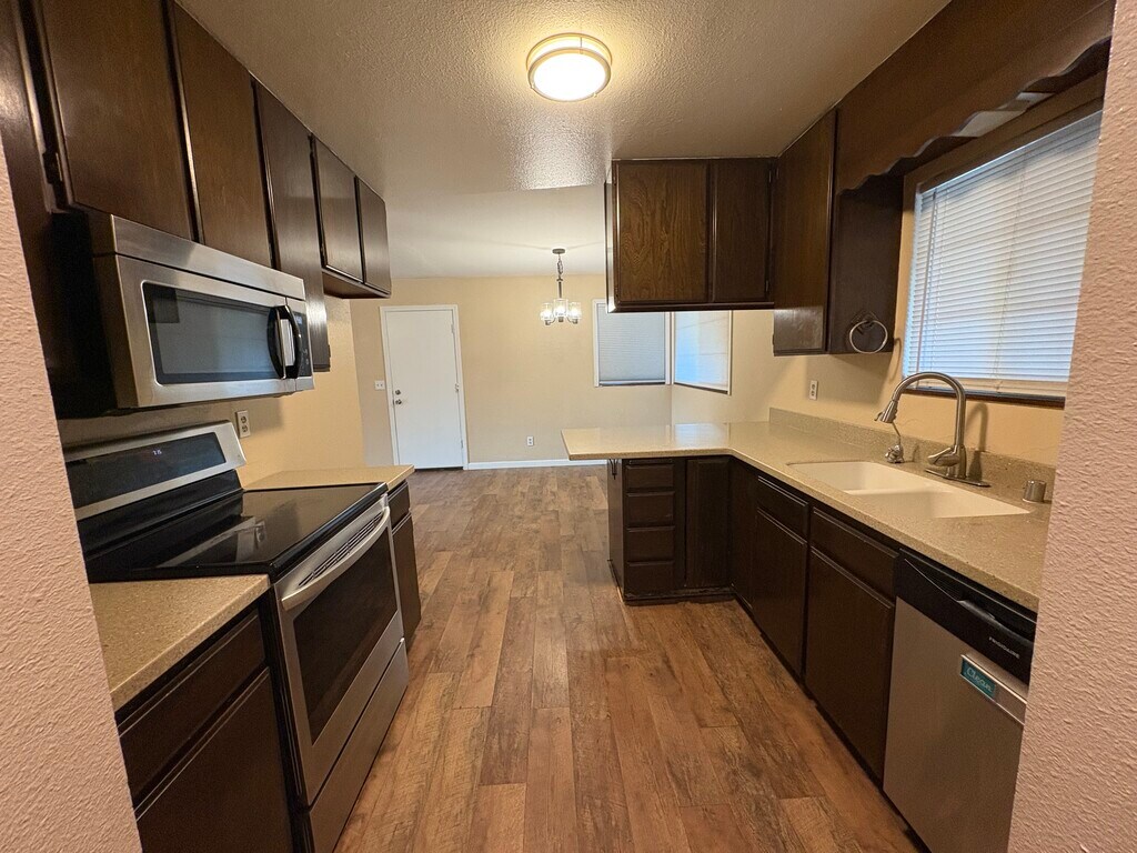 Cozy 1125 sq ft. home on 1 acre of property. Attached garage, wood burning stove, all appliances available. In unit washer and dryer. Evaporative cooling. Perfect for a family or couple wanting to grow. Available to rent 10/1/2025