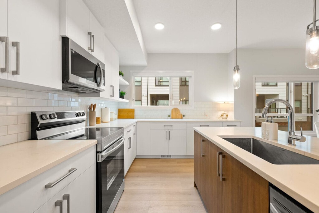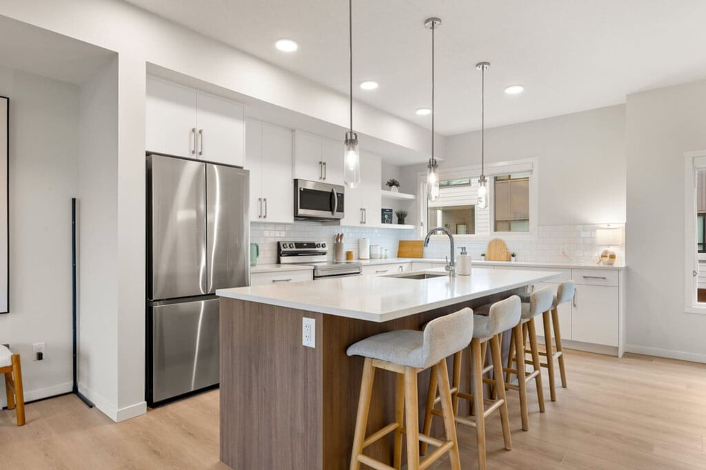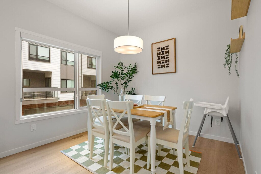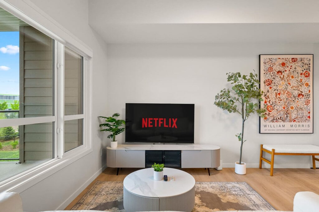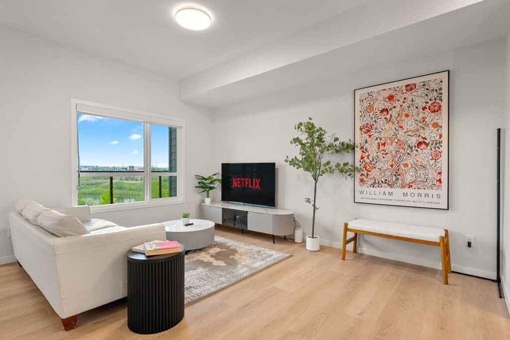 Feel at home in this designer-furnished apartment located in a safe and vibrant community, just steps away from Seton Health Campus, YMCA, dining, and shopping. Enjoy the convenience of a private balcony and easy access to Deerfoot and Stoney Trail. This apartment features a king-size bed with a 50" smart TV and Netflix, two queen beds, and two sofas. The living room is equipped with a 58" smart TV and Netflix, creating a modern and inviting atmosphere. The fully equipped kitchen includes stainless steel and custom appliances, a 4-burner stove, oven, microwave, refrigerator, freezer, and dishwasher. Enjoy complimentary coffee, tea, and a Brita filter. Central AC and heating, a washer and dryer, and fast Wi-Fi (500 Mbps) are also included. The apartment offers free garage parking with additional parking available via street parking and paid visitor parking. Optional upgrades include a National Park Entry, Welcome Basket, Birthday Decor Package, Romantic Wine and Flower Package, Spa at Home Package, Movie Night Upgrade, Christmas Tree and Decor, Halloween Decor and Pumpkin Carving Package, Winter Cozy Package, Beer Tasting Kit, Diffuser and Aroma Set, Additional Bedding and Sleeping Arrangements, Grocery Pre-Stocking Service, and a Pet Friendly Package, subject to availability. Seton is a master-planned community designed for walkability, featuring parks, pathways, and green spaces. Convenient bus services by Calgary Transit connect Seton to key areas, with easy access to major roads like Deerfoot and Stoney Trail for seamless city travel. The apartment is ideally located near Seton Urban District, South Health Campus, Brookfield Residential YMCA, Cineplex Seton and VIP Cinemas, Auburn Bay Lake, Cranston Ridge and Bow River Pathways, McKenzie Towne, Deerfoot Meadows, Chinook Centre, Downtown Calgary, Calgary Zoo, TELUS Spark Science Centre, University of Calgary, Mount Royal University, Calgary International Airport, and Kananaskis Country. The apartment is professionally managed to ensure a smooth and enjoyable stay, offering 24/7 guest support and communication. Full self check-in and check-out are available. A $250 CAD fine will be charged if smoking occurs, with the migration of smoke or smell from the unit. Quiet hours are from 10 pm to 7 am, and noise should be kept under 85db. No parties, drugs, excessive drinking, or loud music are allowed. Events for work or meetings are allowed upon request. Unauthorized late check-out will result in an extra night stay or additional fees. Please remove outdoor shoes while in the home. Be mindful of locking bathroom doors from the outside, as costs associated with locksmiths will be the responsibility of the guest. The use of the mailbox is not included with the property, but a PO box can be arranged prior to arrival for a fee. If items are left behind after a stay, the guest will need to arrange with the host to collect them within 14 days of checkout, with a fee for shipping if required. Guests are responsible for any damage to linens, towels, utilities, or equipment upon check-out, and fees will be claimed through the booking platform. False claims and reviews are not tolerated and may lead to serious consequences. Guests are responsible for any plumbing issues resulting from food or debris down sinks. Tampering with safety devices will result in warnings and potential eviction. Children must be supervised on the balcony. Guests will be charged for lost keys or fobs. Unauthorized late check-out will result in additional fees. The apartment is equipped with fast Wi-Fi (500 Mbps) and a dining table, kitchen island seating, and bar stools, providing a comfortable space for remote work.