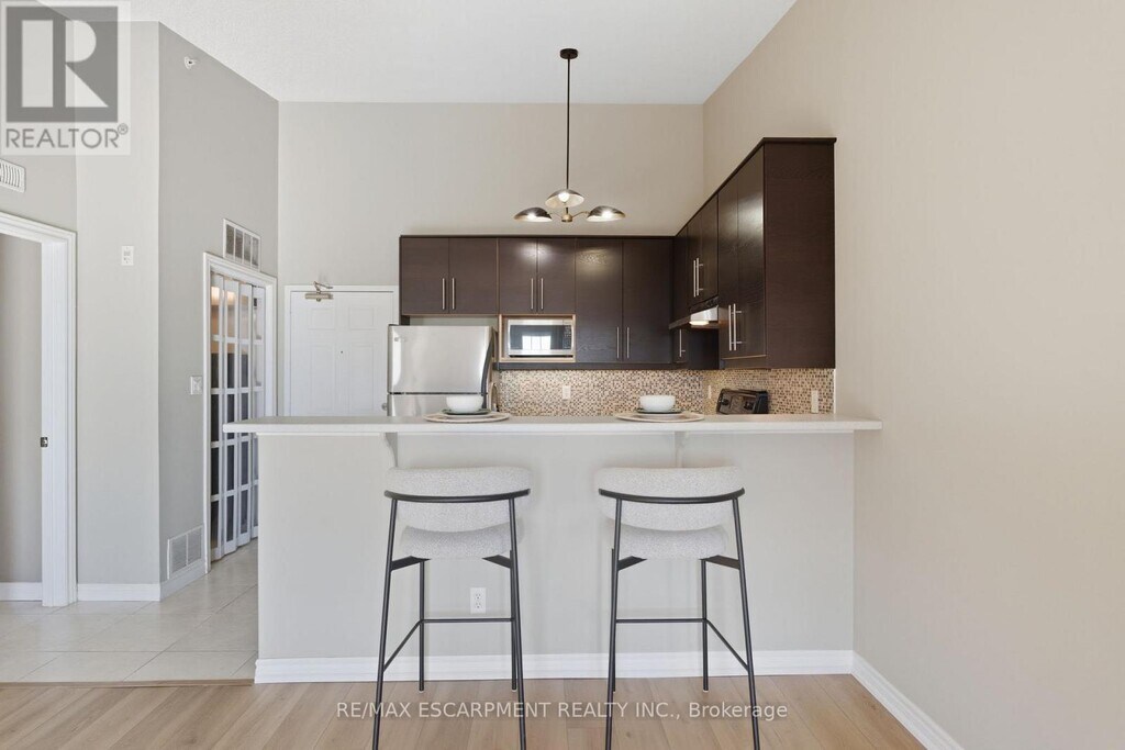 Welcome to this beautifully maintained and spacious 2-bedroom condo,offering a warm and inviting open-concept layout that truly feels like home. The large kitchen is perfect for everyday living and entertaining,featuring a breakfast bar,stainless steel fridge and stove,microwave,and a built-in dishwasher. The generous,light-filled living and dining area flows seamlessly with modern luxury vinyl flooring throughout the unit,creating a welcoming and relaxing space to unwind. The 4-piece bathroom includes convenient,ensuite laundry for your exclusive use. Located in the highly sought-after Orchard community,you'll love being just minutes from all amenities,parks,shops,restaurants,and transit-everything you need right at your doorstep. The building offers wonderful amenities including a welcoming party room,a well-equipped gym,and a relaxing sauna. This suite comes with one dedicated underground parking space,storage locker and additional above-ground visitor parking available on a first-come,first-served basis. A fantastic opportunity to enjoy a warm,well-cared-for condo in an amazing area (id:52069) ID#: 1944331