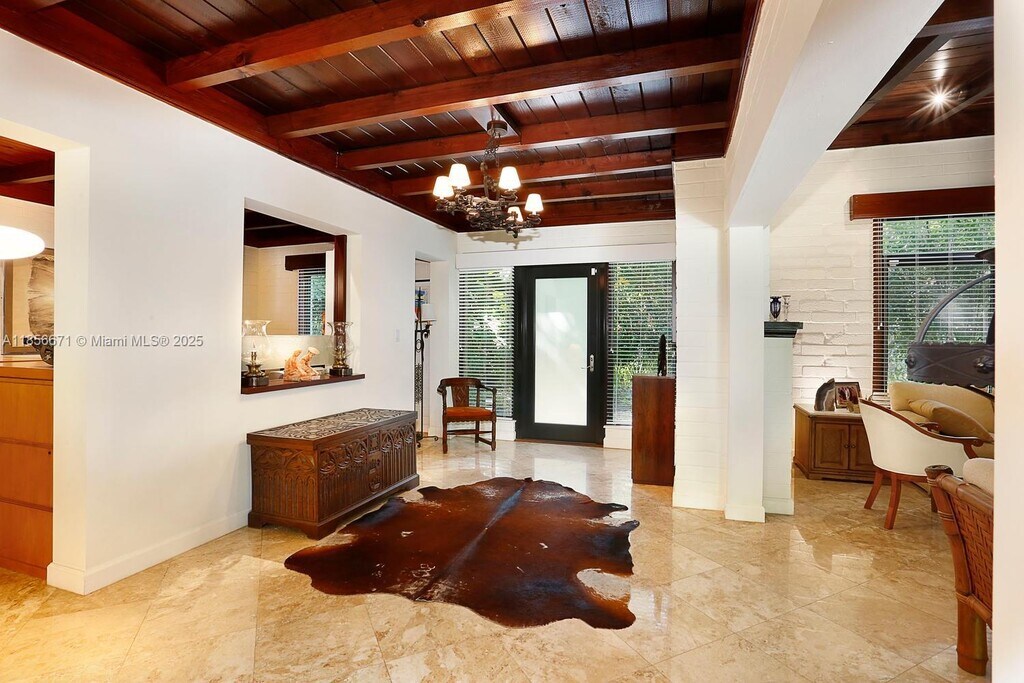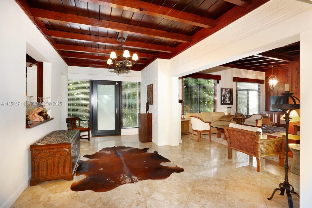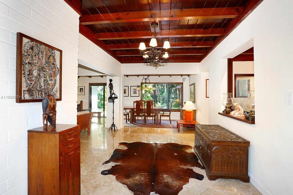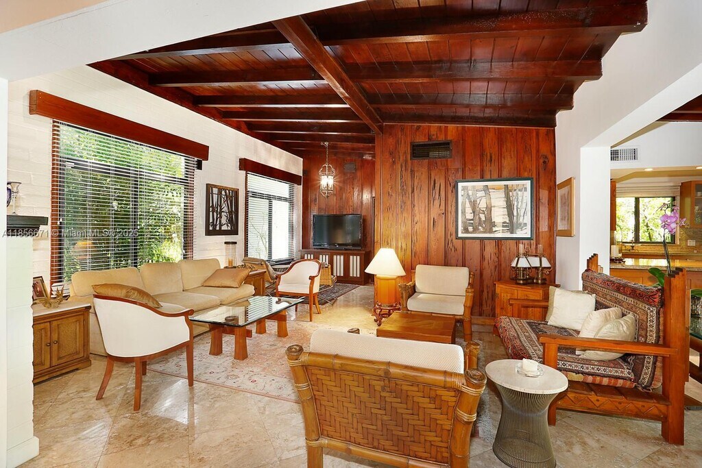 Freshly painted and meticulously deep cleaned inside and out, this mid-century modern home offers 3 bedrooms, 2 baths, and timeless character. Set on a private, gated 20,000 sq ft lot beneath mature oak trees, it features vaulted ceilings, pecky cypress accents, and a decorative fireplace. The kitchen includes wood cabinetry, stainless appliances, granite countertops, and a breakfast bar. A stone terrace overlooks lush gardens, creating a serene outdoor retreat. Unfurnished and ideally located near Bayfront parks, CocoWalk, Coral Gables, Key Biscayne, and Brickell.
