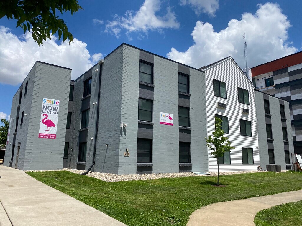 Amazing location near North side of campus and close to Downtown Champaign. All units fully remodeled with new flooring, cabinets, countertops, paint scheme, closet organizers, HVAC, furniture, and laundry added to most units. The property has reserved parking available on-site and is located near the main bus routes into campus and the surrounding area. The 1-bedroom loft units are truly unique with 20 ft vaulted ceilings, skylight, upgraded lighting package, and a large 12' by 10' loft area. The two bedrooms have large open bedrooms and living rooms, with real brick accent walls. All units come furnished with a sofa, coffee table, end table, wall mount TV, fiber internet, desk/chair, bed, kitchen table/chairs, or bar stools. Property upgrades include new windows and siding upgrades with additional landscaping and streetscape improvements. Pets welcome! Income Requirement Waived for UIUC Students! Co-Signer Not Required for Qualified Applicants! Low admin fee or security deposit equal to 1-month rent installment – you choose!
