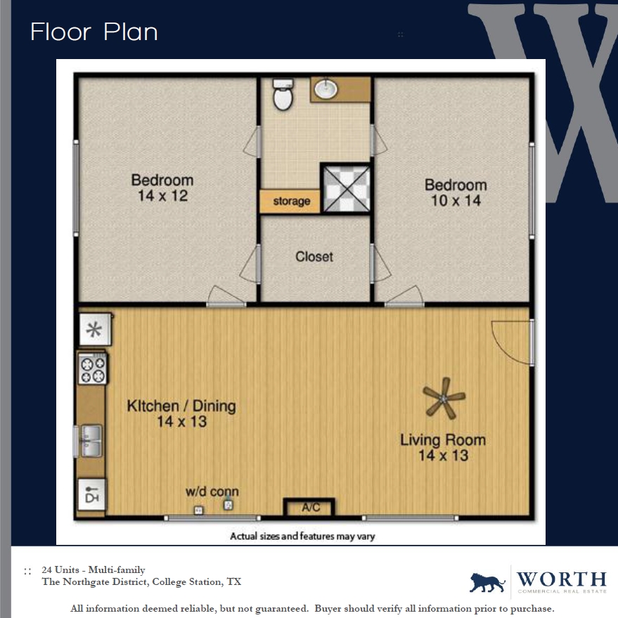 2 Beds, 1 bath - Floorplan 1