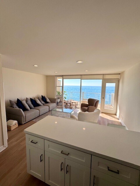 Beautiful ocean front apartment. One bed/bath. Comes with 2 parking spots (tandem). New kitchen, freshly remolded, quartz countertops. Nice, large waterfront private balcony - approximately 80 square feet. Owner pays water and trash pick up, tenant pays electricity and gas. Deposit is 1 month of rent.