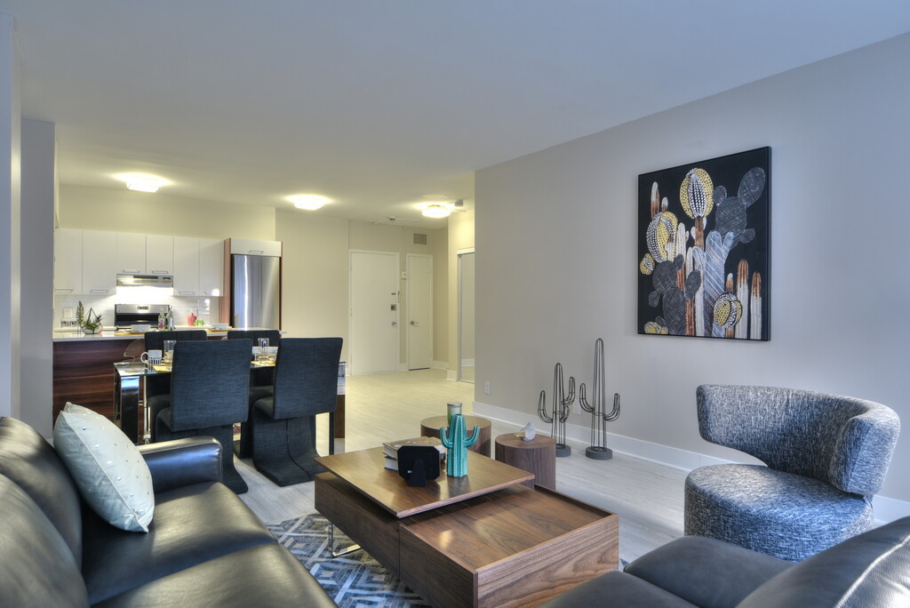 Welcome to Le 2070, located in Shaughnessy Village, within the heart of exciting downtown Montréal. Your home is within easy walking distance of Concordia University, Dawson College, Collège LaSalle and Atwater metro station. A short stroll from your door, you'll find Place Alexis Nihon, where you can get all your shopping done, and the Montreal Forum complex with its movie theatre, comedy club, arcade and bowling alley to enjoy. You will find an array of cafes, restaurants, and bars all around you as you explore the action along St. Catherine Street West. Everything that makes Montréal one of the most vibrant and exciting cities in the world is right outside your door. You'll also have exclusive access to our state-of-the-art top-floor gym just next door, where you can work out while enjoying breathtaking panoramic views of the city. Inside Le 2070, you will be welcomed by a quiet elegance and enjoy a bright and spacious rental suite. Your pets will love it here, too! Laundry facilities are conveniently located on-site and parking is available. An exciting new chapter of your story is waiting to be written at Le 2070 (2070 boul. de Maisonneuve Ouest).
