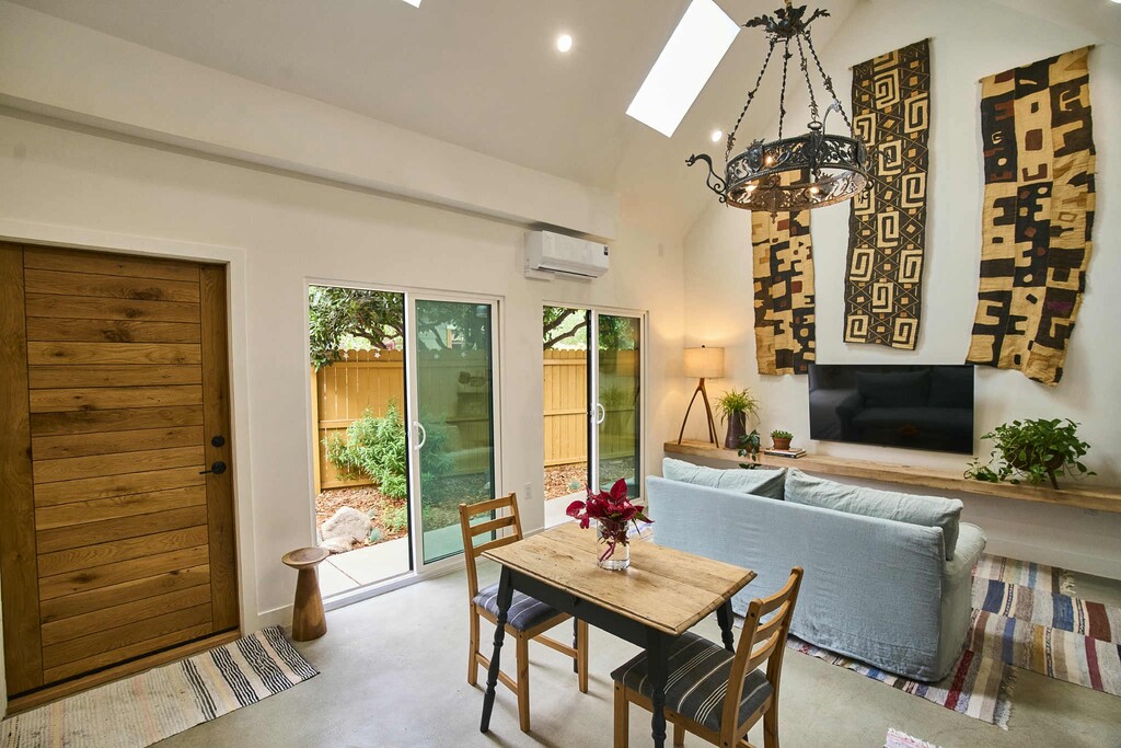 Brand new, modern 2-bedroom home located in the heart of historia Jefferson Park. Featuring a cathedral ceiling, contemporary finishes, open layout, and plenty of natural light. Highlights: 2 spacious bedrooms with ample closet space Kitchen with stainless steel appliances Private outdoor space perfect for relaxing or entertaining Small pets welcome In-unit laundry No street parking Enjoy a prime location near local cafes, parks, and public transportation. This guest house is located behind the main house with a gates entry and completely private patio and outdoor space. This space can be rented furnished or unfurnished. Renter pays for their own water and electricity bimonthly.