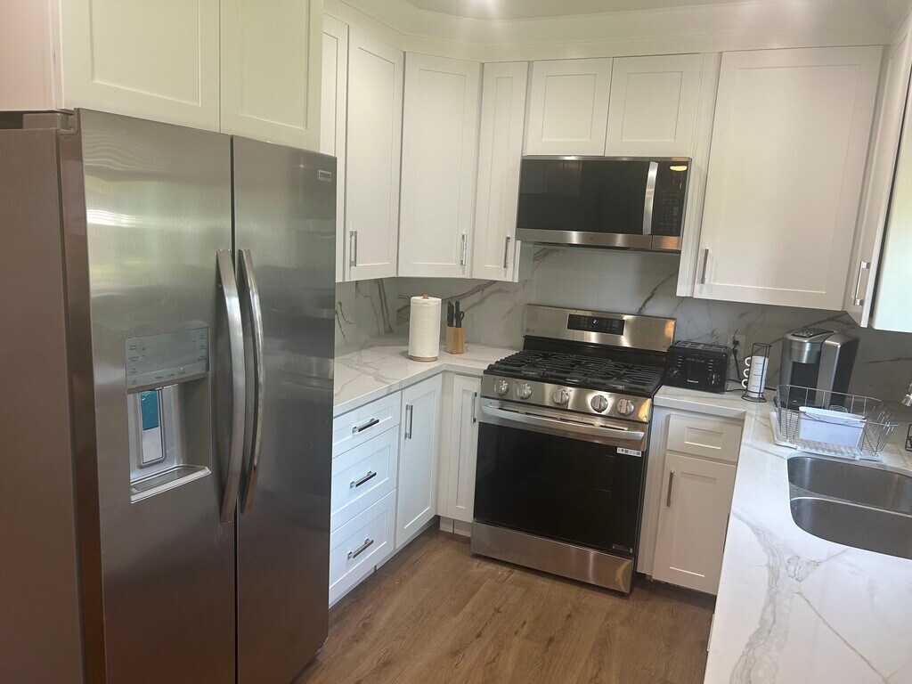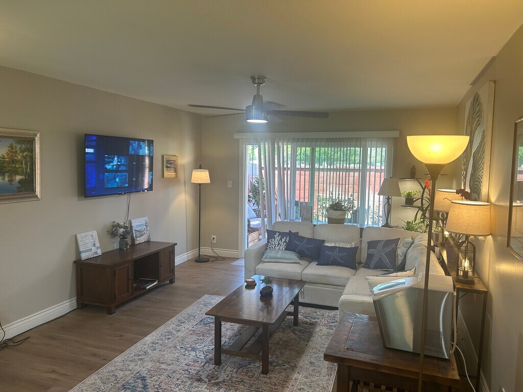 Newly remodeled large one bedroom with washer and dryer, new bathroom, new kitchen new appliances with a large garage storage and a huge patio with a fire pit. All completely furnished with 2 tv’s, air and water filtration and 3 ceiling fans, air conditioning