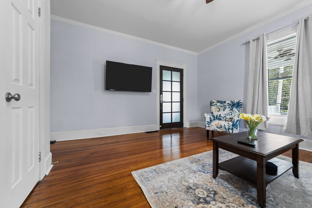 Looking for a comfortable and convenient place to call home while in town? Look no further than our apartment on West Parkway Ave in beautiful, tree-lined Emerywood! This newly rehabbed, 750 sq ft, 1 BR/1 B apartment is the perfect spot for anyone looking to live in a vibrant and exciting community. The apartment is a very easy walk or drive to The Furniture Market Area (1.5 miles away). Additionally, the apartment offers quick access to some of High Point's top employers, including Atrium Health Wake Forest Baptist/High Point Regional Hospital (0.5 miles away) & High Point University (1.1 miles away), as well as a variety of shopping, dining, leisure and entertainment options. The apartment boasts central air, brand new appliances including in-unit washer/dryer. Blackout curtains are hung throughout the unit for those working the night shift. High Speed Internet/Wi-Fi & Off-Street Parking are also included. Nonsmokers only; No pets. Show Less Smart TV description There are two smart tvs, one in the Living Room & the Bedroom. There are a number of streaming services included but I recommend that clients just bring their own device and log into the free Wi-Fi for a more personalized experience.