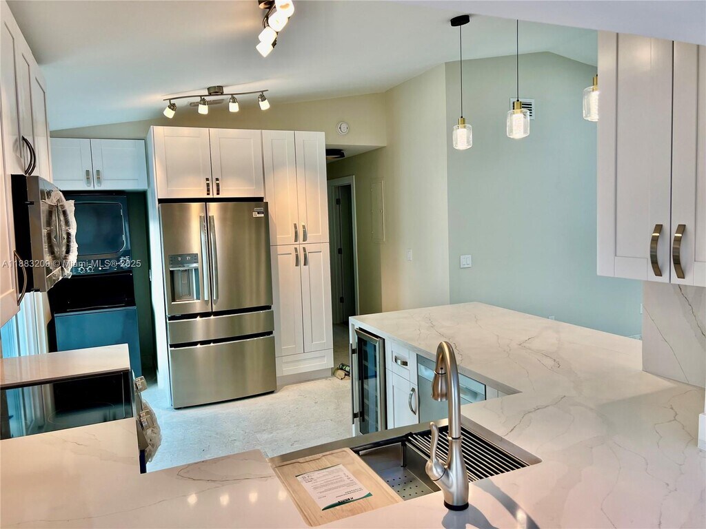 Be the first to enjoy this Beautiful Fully Remodeled Home. Much attention to detail + design. Open Layout & Split Floorplan. Natural Stone Floors and Refreshing Sunlight thought the entire home. White Shaker Farm Sink Kitchen. Calacatta Grey & Gold vein Quartz Countertops w/ Flowing Waterfall. Double Bar Top seating area. New Stainless Steel Frigidaire Gallery appliances. Impact Windows & Doors. FIRST + LAST + SECURITY