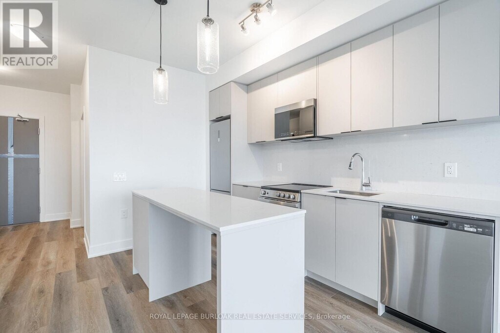 Pristine 1 Bed + Den,2 Full Bathroom Residence With Loads of Upgrades At Martha James Boutique Condos in Prime Burlington Location. This Never-Before-Occupied Home Offers Approx. 700 Sq Ft Of Sun-Drenched,Open-Concept Living Space With Soaring Ceilings,Expansive Windows,and Stunning Lake Views from The Balcony. The Gourmet Kitchen Showcases Elegant Quartz Countertops,Premium Stainless-steel Appliances With Built-In Microwave,And A Chic Backsplash. Internet And State-Of-The-Art Smart Home Technology Provided Throughout The Building Including Facial Entry. Exceptional Amenities Include A Concierge-Serviced Lobby,Automated Parcel Lockers,A Stylish Social And Co-Working Lounge,A Fully Equipped Fitness Centre With Yoga Studio,And A Roof-Top Terrace With BBQ Facilities. Ideally Situated Near The QEW,GO Transit,Upscale Shopping,And Fine Dining,This Residence Delivers Unparalleled Convenience And Contemporary Luxury Living. In-Suite Laundry,And One Parking Space Directly In Front of Locker Are Included. (id:52069) ID#: 2130694