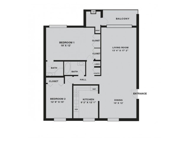 2 Beds, 2 Baths, 1230 sq ftAvailable Dec 5Largest 2 BedroomThis is the largest 2 Bedroom at this PropertyModel Gallery