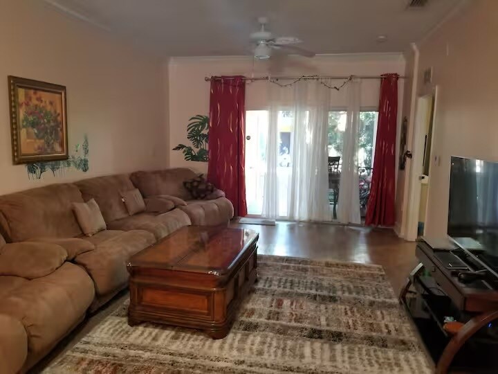 So spacious! Open floor plan, fully furnished 3BD/2BA ground-floor condo — no stairs. Features all new furniture, brand-new mattresses, and three king-size beds plus a bunk bed. The master bathroom includes a jacuzzi tub and a large separate shower. The kitchen is fully equipped with utensils, cookware, and small appliances. Private washer and dryer in the patio area. High-speed Wi-Fi. Located in a quiet, safe cul-de-sac. Parking available in front of the unit, plus garage. Rental Terms • Short-term (90+ days): $2,300/month • Winter season (Dec–Feb): $3,000/month • Yearly lease: $2,200/month • Security deposit: equal to one month’s rent • Tenant pays all utilities • Background check required before move-in • Pet-friendly