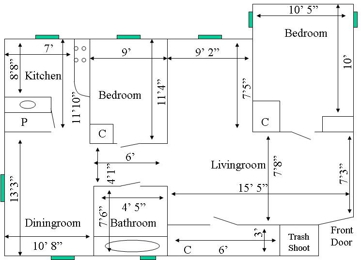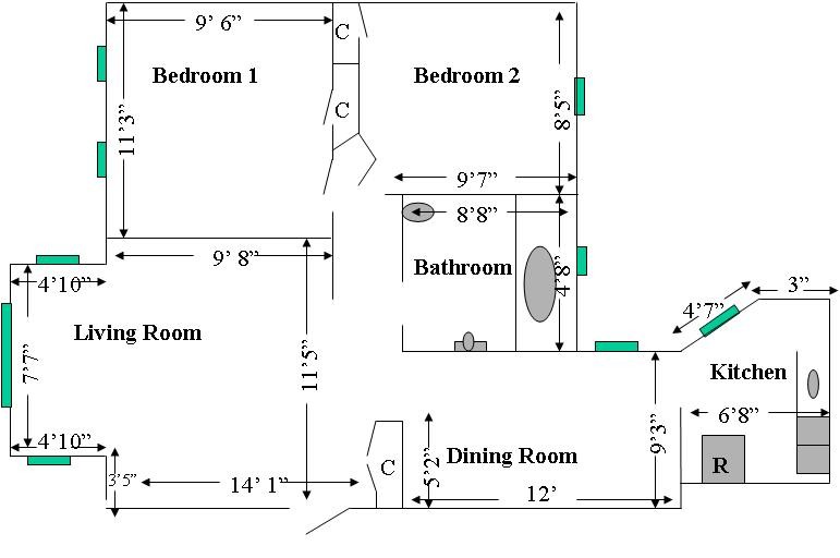 2 Bedroom/1 Bath (01) - Floorplan 1 2 Bedroom/1 Bath (03)