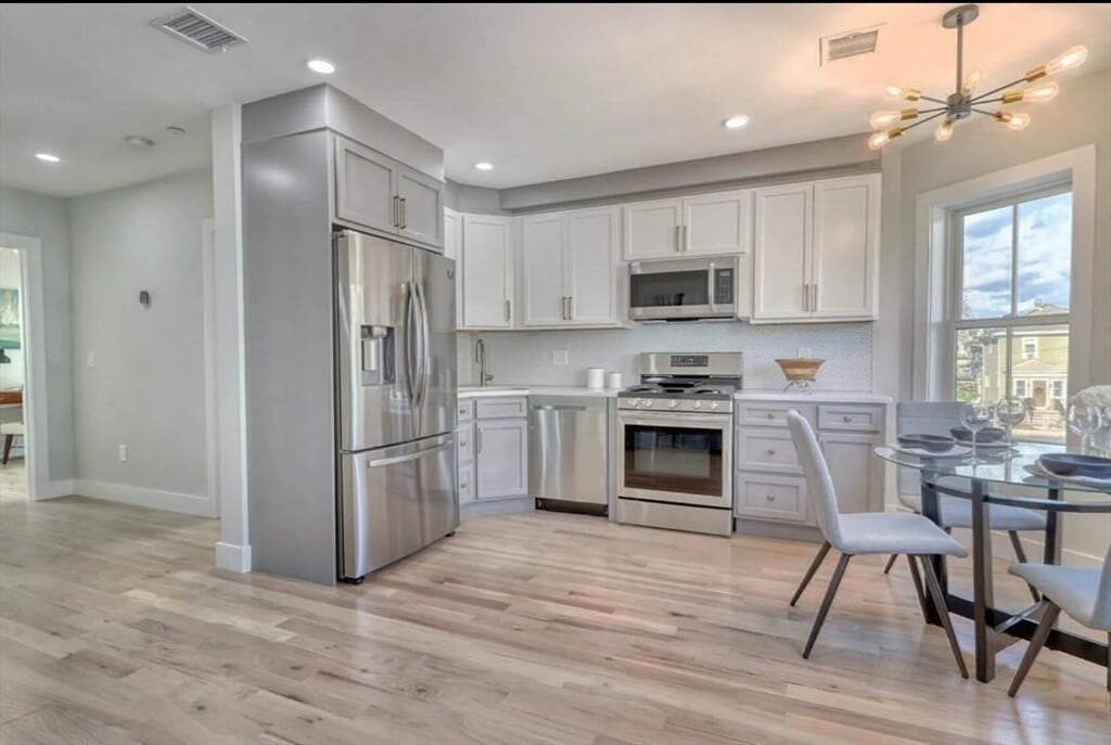 Stunning 3-bedroom, 2-bath apartment available for rent. This beautifully designed unit features an open layout that maximizes space and fills each room with natural light, creating a bright and inviting atmosphere. The kitchen complete with high-quality appliances, sleek countertops, and plenty of cabinet space, making it both functional and stylish. Each spacious bedroom boasts hardwood floors and contemporary finishes, providing a comfortable retreat. The bathrooms are elegantly designed with modern fixtures and tasteful tiling. Convenience is key, with laundry in the unit. Located in a prime area, you'll have easy access to local amenities, a variety of dining options, shopping, and the vibrant atmosphere of the surrounding neighborhood.