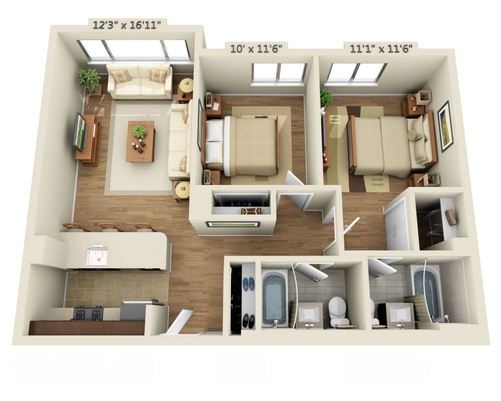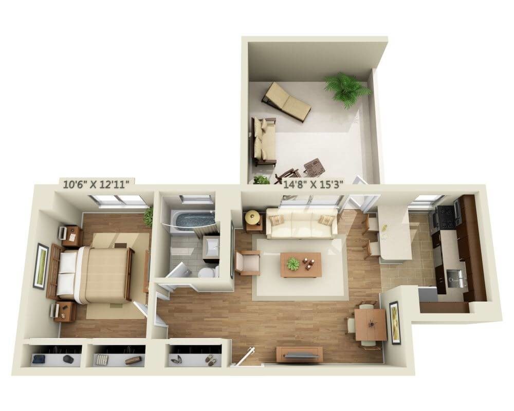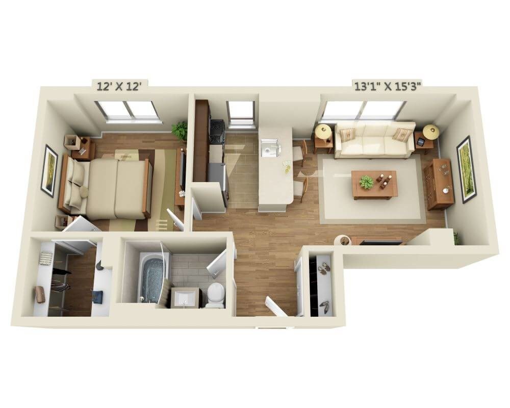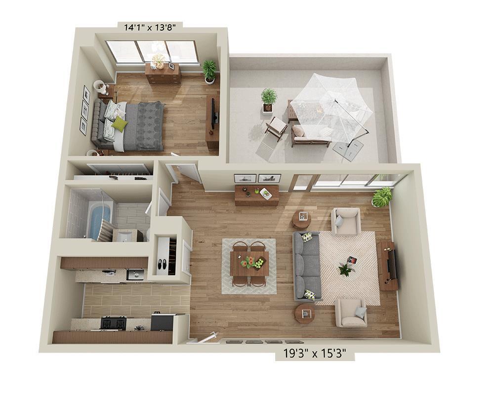 1 Bed, 1 Bath, 586 sq ftAvailable NowModel Gallery