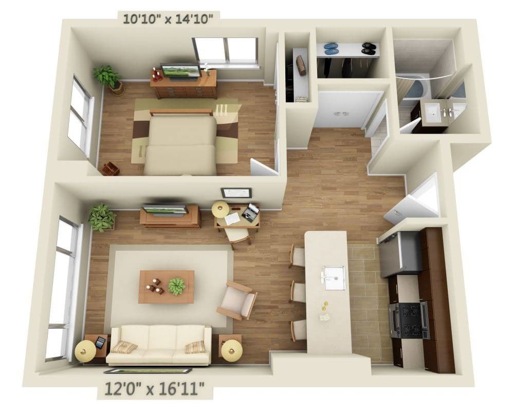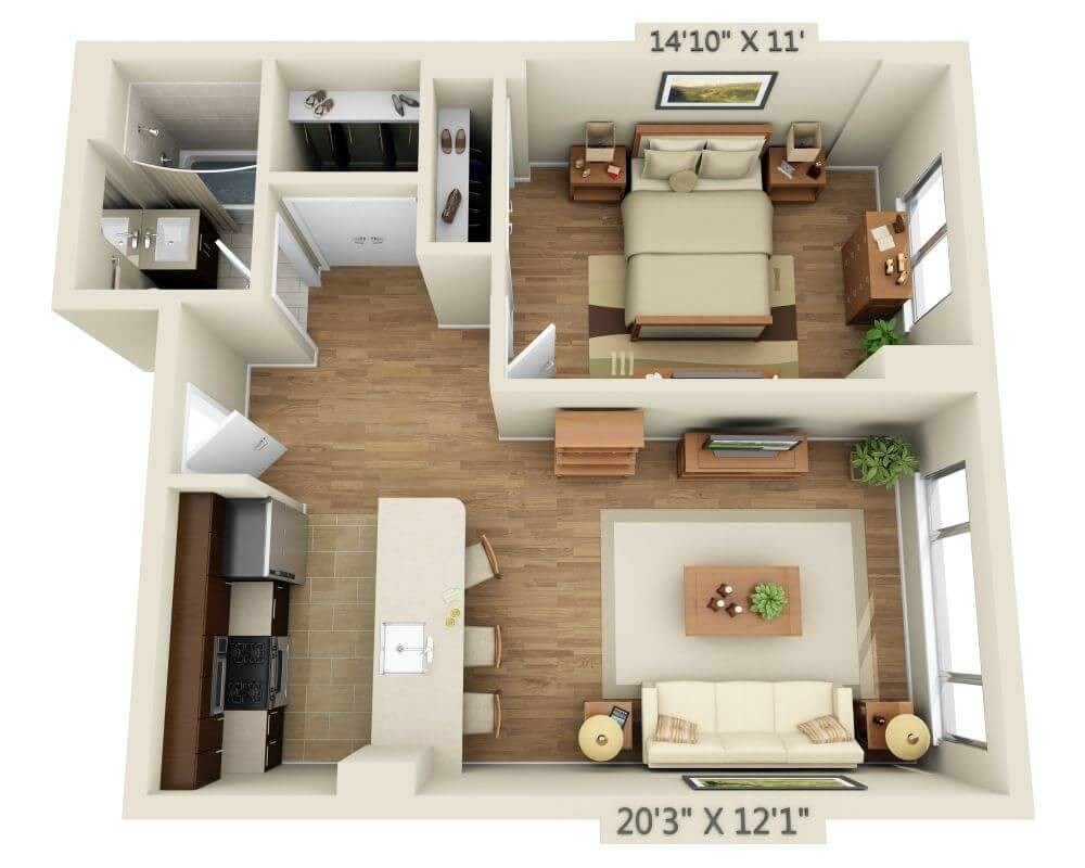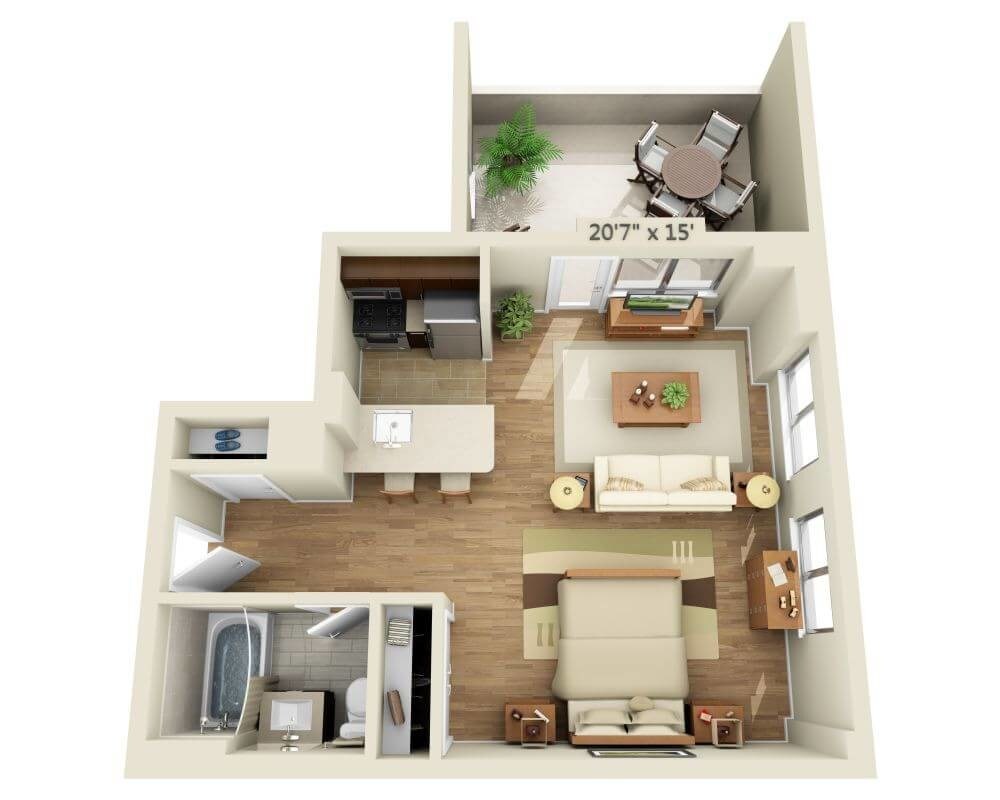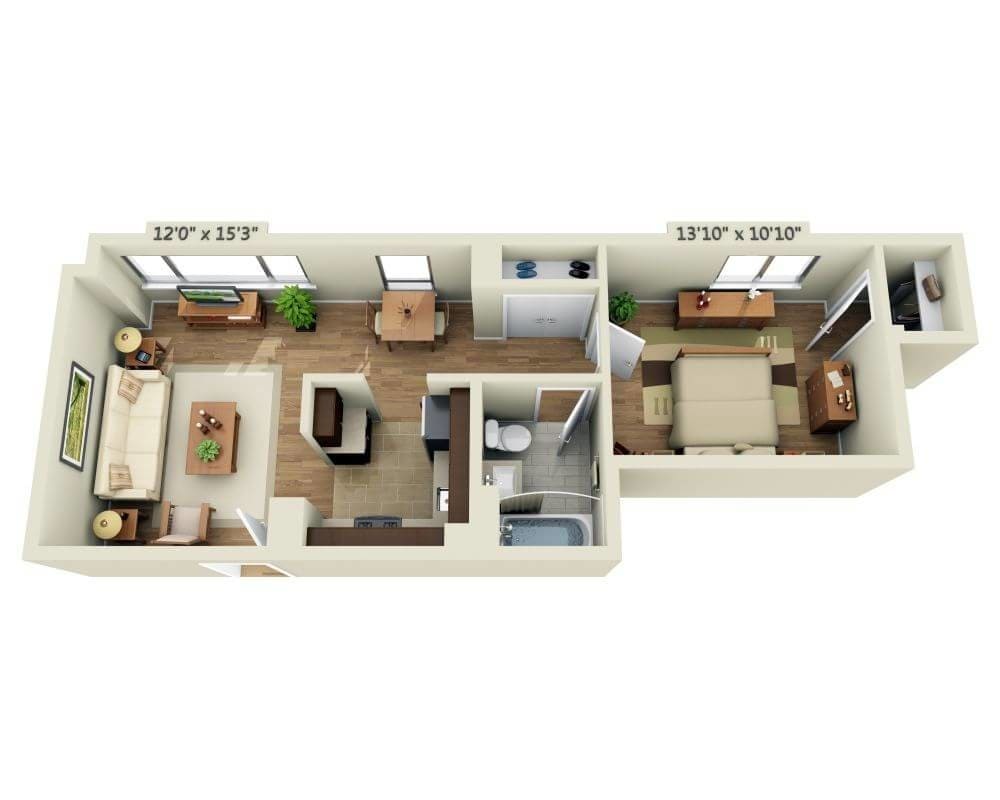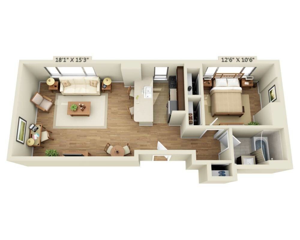 Studio, 1 Bath, 483 sq ftModel Gallery