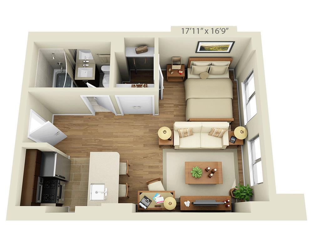 Apartment Model: Studio E1E-RCall For RatesStudio, 1 Bath, 449 sq ftUnavailable![]()