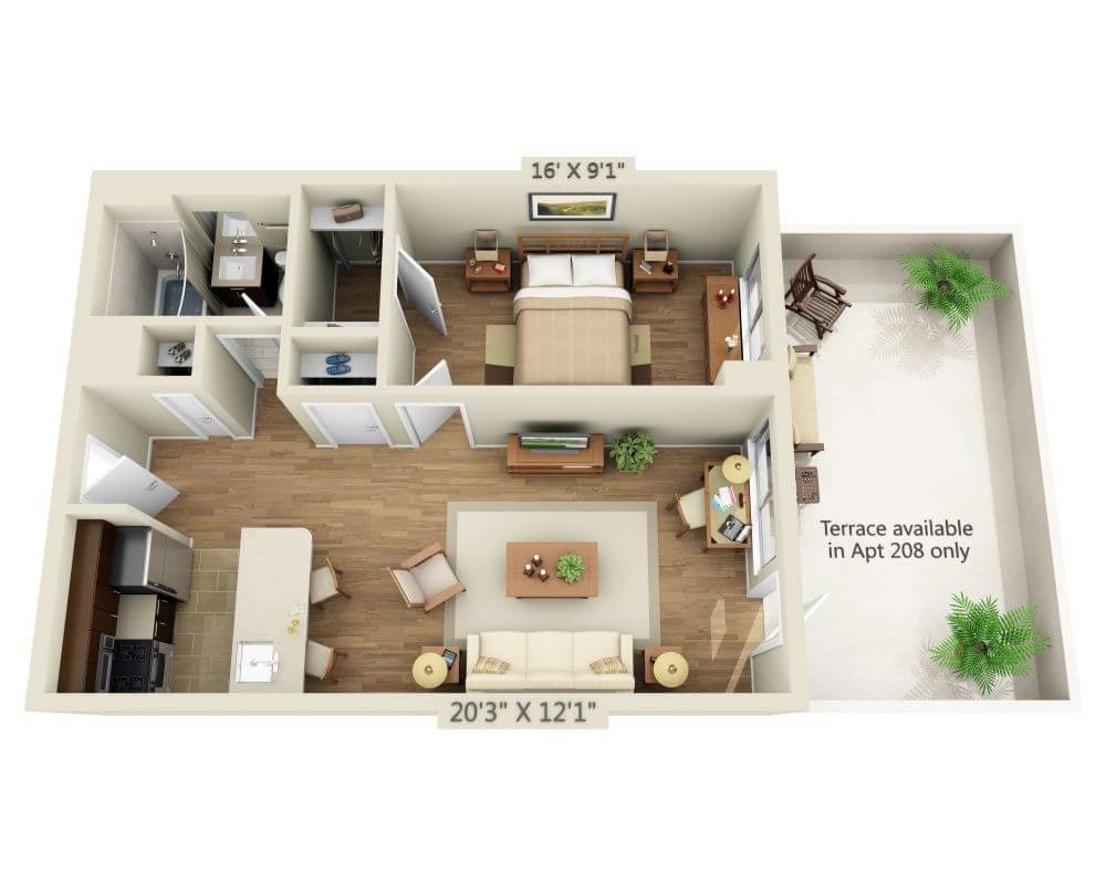 Apartment Model: Studio E1ECall For RatesStudio, 1 Bath, 449 sq ftUnavailable![]()