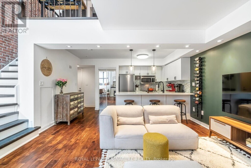 Stunning two storey loft featuring an exposed brick accent wall and dramatic 17 foot ceilings. Spanning 758 sq ft,this beautifully designed and truly unique space offers a spacious bedroom plus den,a full ensuite bathroom upstairs,a convenient main floor powder room,and two private balconies. Enjoy the rare convenience of a main floor walkout - no elevator required,along with a generously sized parking space.The loft showcases engineered hardwood flooring throughout and an updated kitchen with full size appliances,along with ensuite laundry for added ease. Available partially furnished if desired,this residence is ideally located in one of downtown's most sought after neighbourhoods,just steps to Wellesley,Bloor,and Sherbourne TTC stations. Coffee shops,restaurants,groceries,transit - it's in the heart of it all!Building amenities include a party room,BBQ area,landscaped courtyard,and bicycle storage. A perfect urban retreat that seamlessly blends character,comfort and convenience. Residents also enjoy complimentary access to the fitness centre and swimming pool at the community centre directly across the street which is amazing! (id:52069) ID#: 2046622