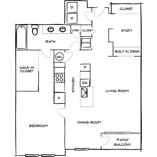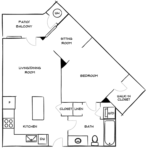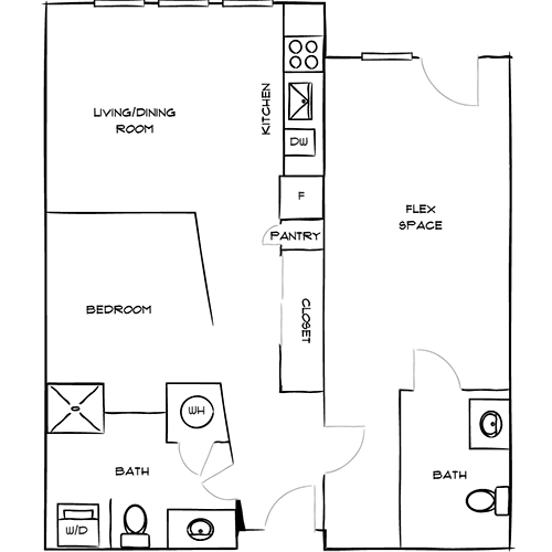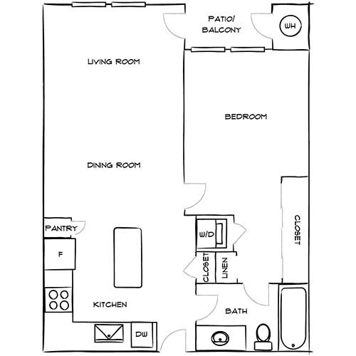 Studio, 1 Bath, 494 sq ftAvailable NowModel Gallery
