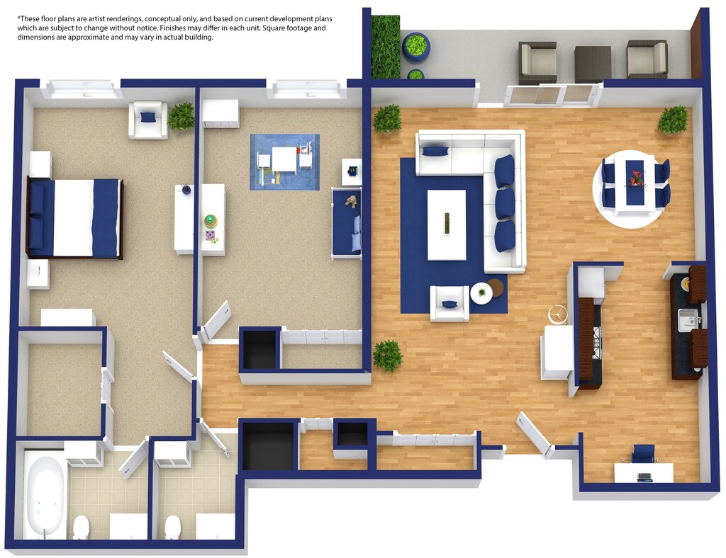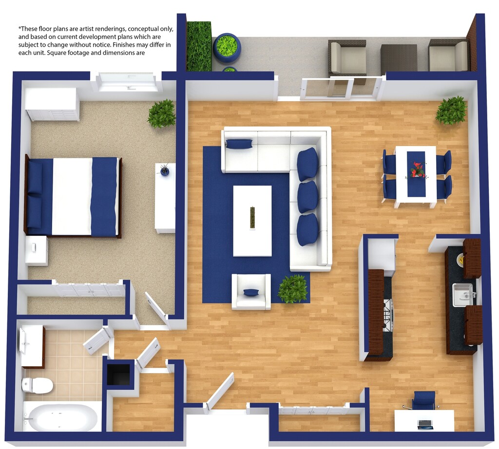 1 Bed, 1 Bath, 760 sq ftModel Gallery