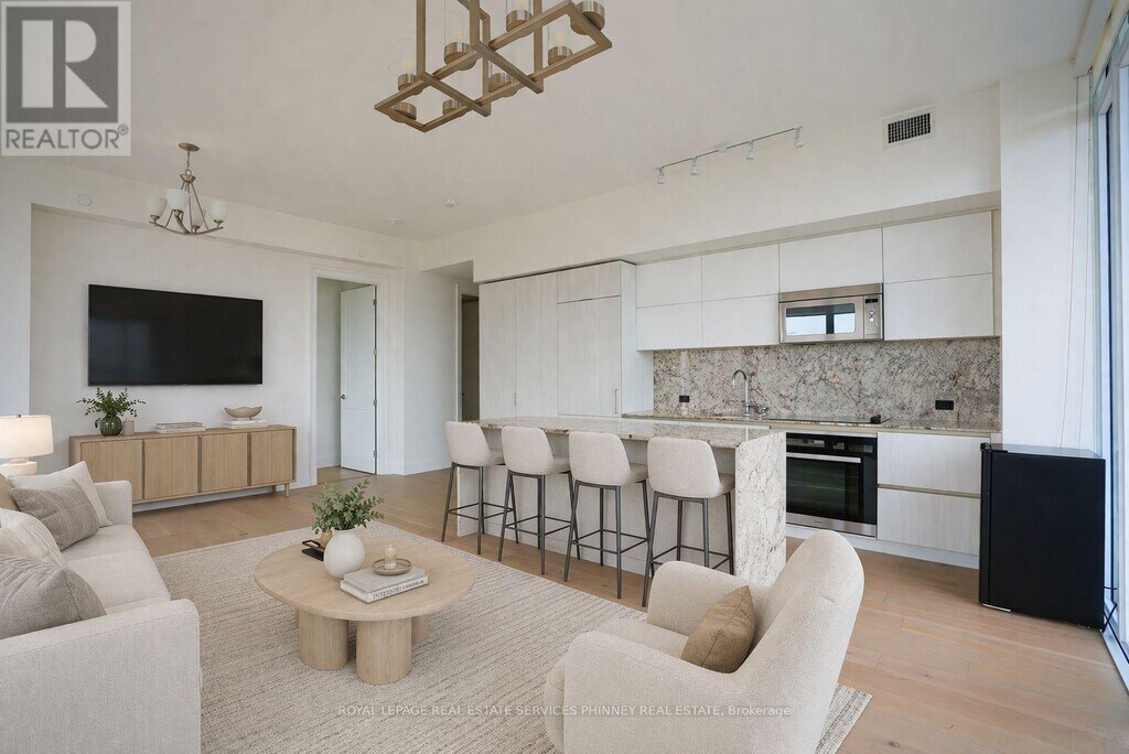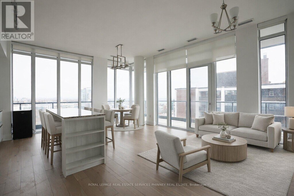 Location. Location. Location. Welcome to this stunning lower penthouse condo in the heart of Port Credit. Boasting over 1,200 sq. ft. of beautifully upgraded living space,this bright and airy suite features 9ft ceilings and expansive south,west and east facing exposures,flooding the home with natural light throughout the day. Step outside onto the wrap around balcony and enjoy panoramic views perfect for morning coffee,evening sunsets,or entertaining guests. This well designed layout includes two spacious bedrooms plus a versatile den,ideal for a home office or guest space,along with two bathrooms with modern finishes. The open concept living and dining area connects to a contemporary kitchen,making it perfect for both everyday living and hosting. With additional storage,in-suite laundry,one parking and one locker. Located just steps from the GO Train and amenities including boutique shopping,trendy restaurants,scenic lakefront trails,and the lively Port Credit waterfront community. (id:63800) ID#: 1932061