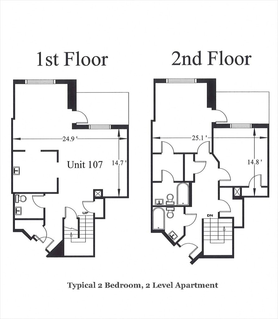 Two Bedroom Two Bath - Floorplan 1 Two Bedroom Two Level