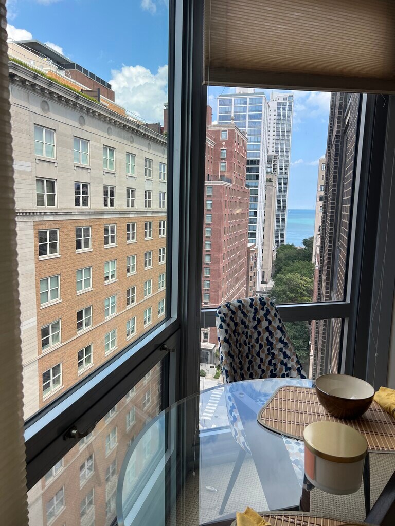 A studio apartment in the heart of Gold Coast, Chicago with a lake view. 550 sqft makes it spacious compared to similar studios nearby. The kitchen features dark cherry cabinets with granite countertops. Amenities include a 24 hour doorman, garage parking, bike storage, laundry room, party room, an outdoor pool w/ generous deck, lounge chairs, picnic tables, grill, and a large storage locker right on your floor! Gold Coast is known for its luxurious living and stunning views. You're steps from fine dining restaurants, boutique shopping, and Lake Michigan! Rent is below the market estimate according to rental sites. Rent covers everything except electric - cable and internet included as well. On-site maintenance to help with any issues. Trash removal located on each floor for convenience. Laundry accepts cash and credit. Furniture featured in photos is not included. First month's rent is due upon move-in. A non-refundable move-in fee of $500 (weekday) or $750 (Saturday) is required. Any pets will require a monthly pet fee; $25 for cats. No dogs allowed per building rules :( No smoking.