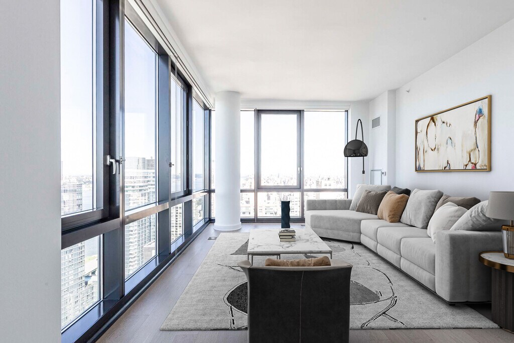21 West End is the pioneer luxury rental building in Lincoln Square. Located on West End Avenue between 60th and 61st Streets, 21 West End rises 48 stories above Lincoln Square. With striking views of the city skyline and Hudson River, the residences offer a wide range of studio to three bedroom layouts, designed by SLCE Architects. The amenities at 21 West End are unprecedented. A 24-hour concierge, bar and café, dog park, playroom and workshop offer convenience to all residents. The fitness center includes over 60,000 SF of actively programmed exercise space, in addition to a yoga room, boxing studio and 60-foot indoor pool and spa. The building features ample entertaining space, including a lounge with outdoor terrace, club room, golf simulator, screening room, library and wine tasting room, plus more.