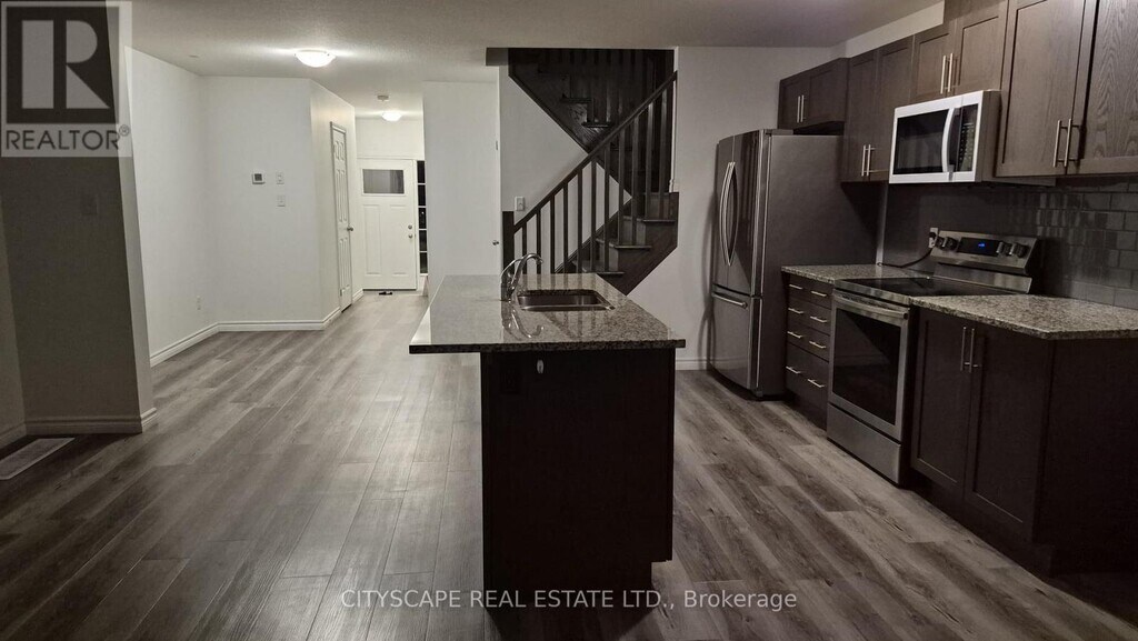 Enjoy comfortable living in a well-maintained townhome located in one of Kitchener's fast-growing,family-friendly communities. The main floor offers an open-concept layout with hardwood flooring throughout,featuring a functional kitchen with stainless steel appliances including a built-in microwave,custom backsplash,undermount sink,and breakfast bar. The breakfast area provides a walkout to a large 12-foot deck and a generous backyard. The upper level includes a primary bedroom with a walk-in closet and 4-piece ensuite,along with additional spacious bedrooms filled with natural light. A conveniently located second-floor laundry room with sink eliminates the need to access the basement for daily use. The unfinished basement offers flexible space suitable for storage,a small gym,or a home office. Ideally situated close to public and Catholic schools,parks,playgrounds,walking trails,greenbelts,the Huron Natural Area,community centre,medical clinics,childcare facilities,grocery stores,restaurants,pharmacies,and Sunrise Shopping Centre. Easy access to public transit and Highway 401 via Homer Watson Boulevard makes this location convenient for commuters traveling to Waterloo,Cambridge,Guelph,or the GTA. (id:52069) ID#: 2091988