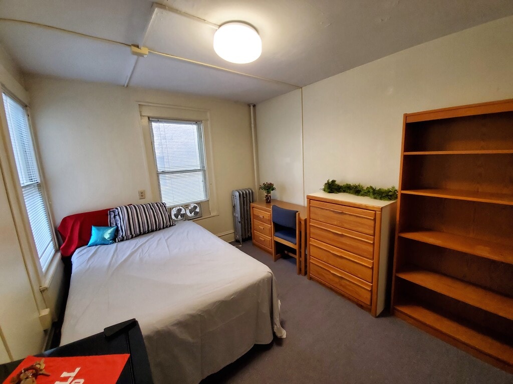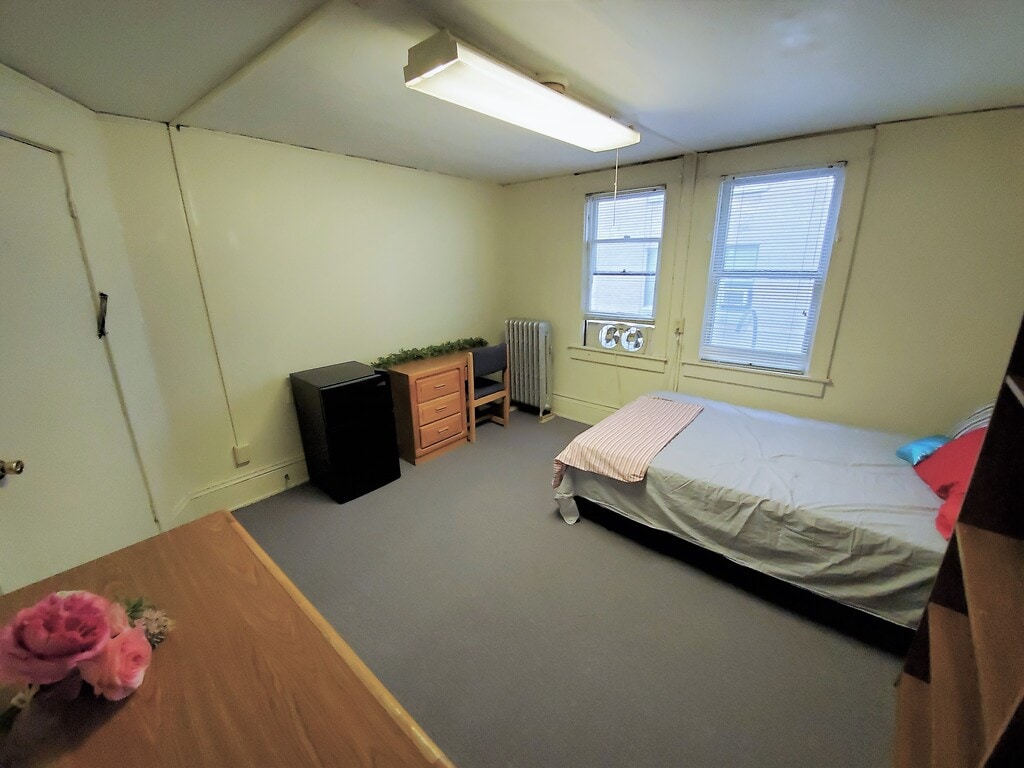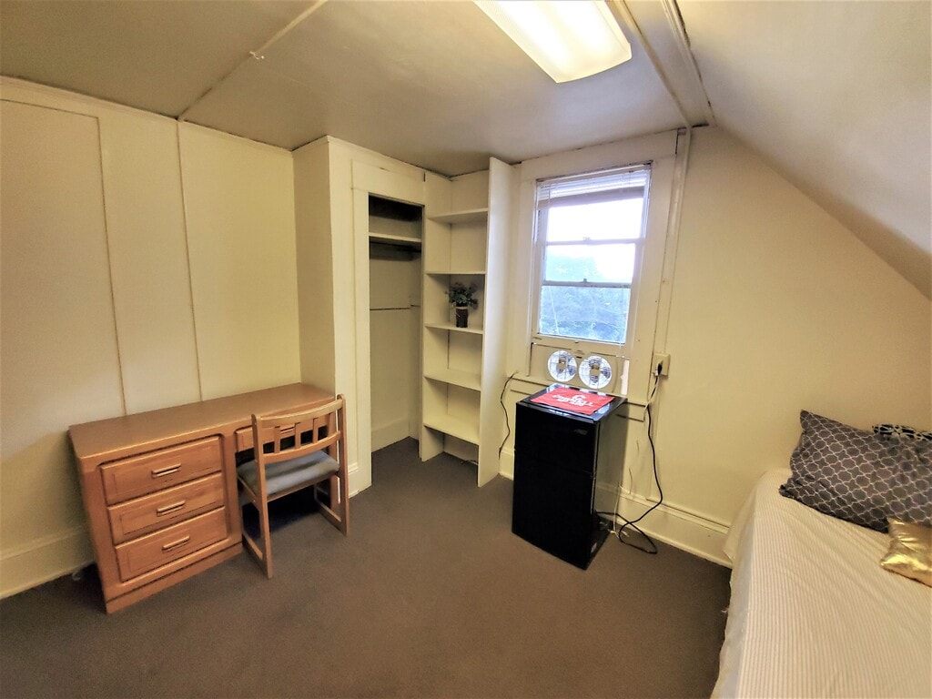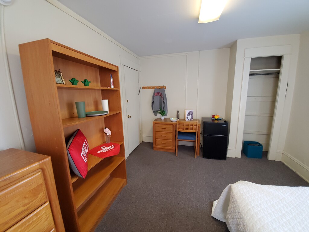 210 Dryden Rd. is located in the heart of Collegetown, 200 feet from Cornell’s entrance. This house features individual rooms on the second and third floors of the house. Each floor has two shared bathrooms, and one shared kitchen. Laundry facilities are available on the second floor. There is also a common area on the second floor with a 50" flat screen TV for tenant use. The building entrance requires a proximity reader tag for entry. Each private room is carpeted and comes fully furnished with a full-sized bed, dresser, bookcase, desk & chair, and a mini-refrigerator.