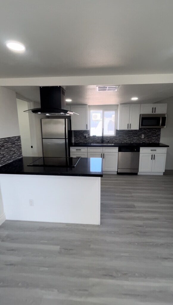 Everything brand new! Complete renovation of the whole house 3BD1BA! Beautiful bathroom mirror with anti fog features and LED dimmer lights throughout the house! New appliances! Private gated parking! Water, trash and sewage included! Laundry in unit! Brand New White Vinyl Fence with Rolling gate for parking!! Qualifications for renting: Income verification required. No evictions, no smoking, 1st month and security deposit equal to 1 month of rent. $47 credit and background check paid to transunion. Water, trash and sewage is included in the rent.