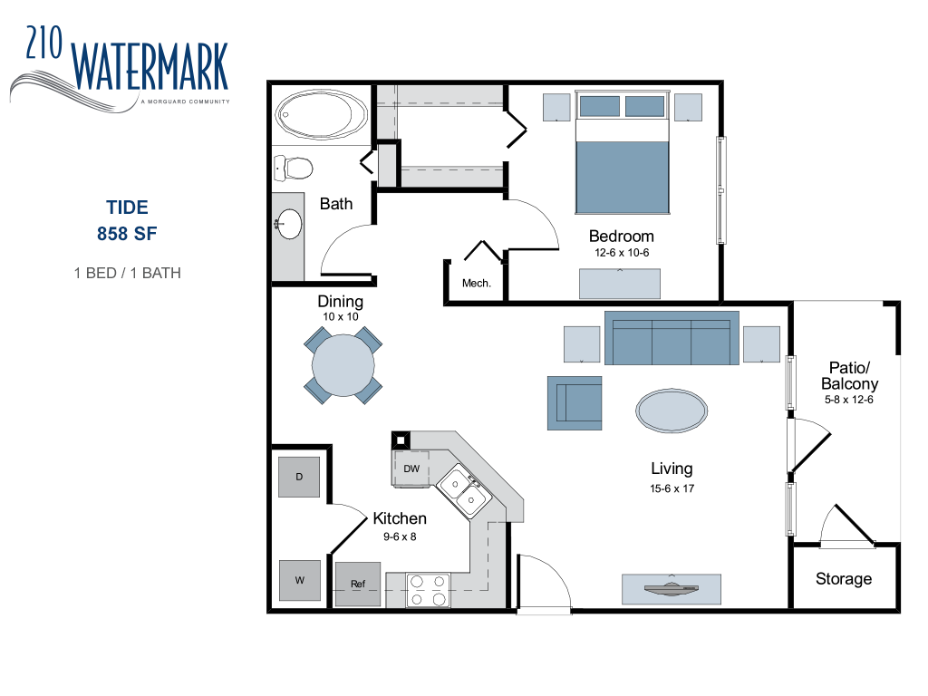 210 Watermark offers 1 to 3 Bedroom apartments starting from $1,316 and having 678–1,510 sq ft. Here is the current pricing and availability:
