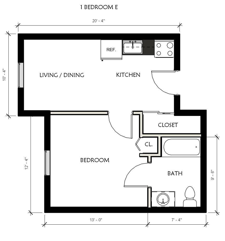 1 Bedroom- E - Floorplan 1 1 Bedroom - A