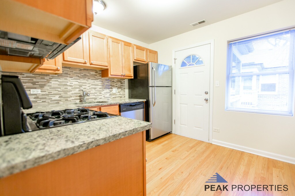 Nicely updated apartments in Lincoln Square / Bowmanville. The apartments themselves have central heat and air, washer/dryer in unit, stainless appliances, granite countertops, new backsplashes, new bathrooms, and hardwood floors throughout. Located just steps from Winnemac Park and great shopping, and 5 minute walk to Lincoln Square with an incredible assortment of restaurants, breweries, cafes, gyms, and grocery stores. The Lawrence Metra station is located nearby, as well as the Red and Brown el stations. The building is pet friendly, offers off street parking for an additional monthly fee, each unit has a section of a shared deck /stairwell system. Building utility fee, pet fees, and move in fees apply. Listed by Peak Realty Chicago, professionally managed by Peak Properties.