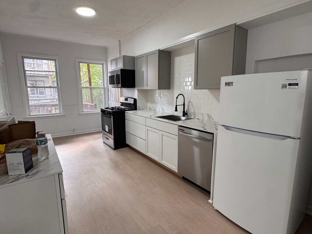 Newly renovated for rent. Two bedroom, one bathroom available for rent on October 1, 2025. Unit come with stainless steel appliance, gas cooking, oven, microwave, fridge, dishwasher, in-unit Bosch washer and dryer. Tenants pay electricity and gas. Water is included. 12 months lease. Income proof and reference is required. No sublet and no pet. No undergraduate students.
