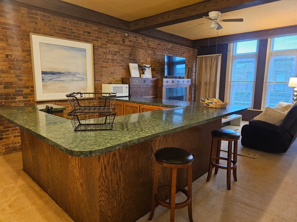 AVAILABLE Nov 1, 2025 This is a great spacious getaway for individuals or couples, to enjoy what the Allegheny National State Forest has to offer whether you're in town on business or visiting. This newly renovated apartment has everything that you could possibly need to make your vacation complete. Large open concept featuring high ceilings with beautiful wood beams and exposed brick. Lots of natural light. When you walk into the unit you see the huge kitchen island. Queen bed, designated living room with a gas fireplace. Sitting area for 2 in a nook behind the living room. Large walk in closet with lots of shelf space. Spacious bathroom with a walk in shower. Tasteful art through out. Year Lease. Everything included.