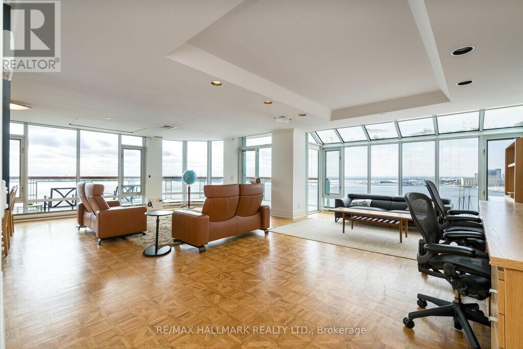 Located in Harbourfront's Historic Terminal Building with 24 hr Concierge,breathtaking south/west views,2 large bedrooms,2- 4 piece bathrooms,this luxury corner unit is fully furnished with high end furniture which makes it a one of a kind exclusive property not to be missed. Located on the 11th floor of a limited 60 unit building,featuring 2 terraces with one that wraps around the living area with south and west views. Indoor Pool one floor below with Sun Deck. Enjoy your morning coffee watching the sunrise,planes land and yachts sail. Conveniently located close to the Entertainment,Sports and Financial Districts. Billy Bishop is steps away with shops,restaurants and Farm Boy right at your door. Non-Smoking (id:52069) ID#: 2134522