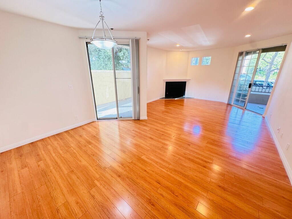 This unique two-bedroom, two-bathroom ground-floor apartment has tons of light and a private patio. It also has a FULLY equipped kitchen(Fridge, stove, microwave, dishwasher), CENTRAL AC and FIREPLACE, granite countertops, laminate and tile floors. In-unit washer and dryer! 2 tandem garage parking spaces. This gated apartment building is conveniently located in a calm neighborhood close to shops, restaurants, parks and more!