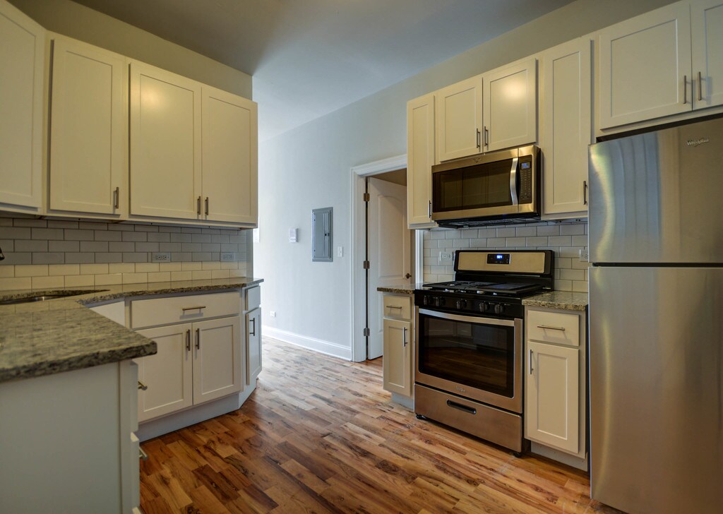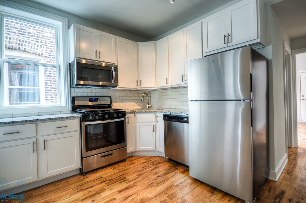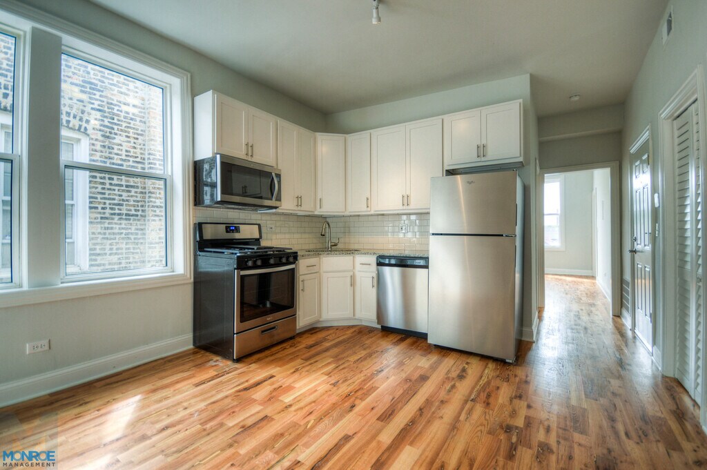 This completely renovated building is steps away from the Western Blue Line station and all that Bucktown/Logan Square has to offer!Live in prime Bucktown/Logan Square location! New kitchen with granite counters, shaker cabinets and Stainless Steel Appliances. This building has hardwood floors throughout with lots natural light streaming in through windows. You will be living steps away from Holstein Park, Western Blue Line, and tons of restaurants, retail, and night life! The front live/work space could be perfect for a small business or artist studio.