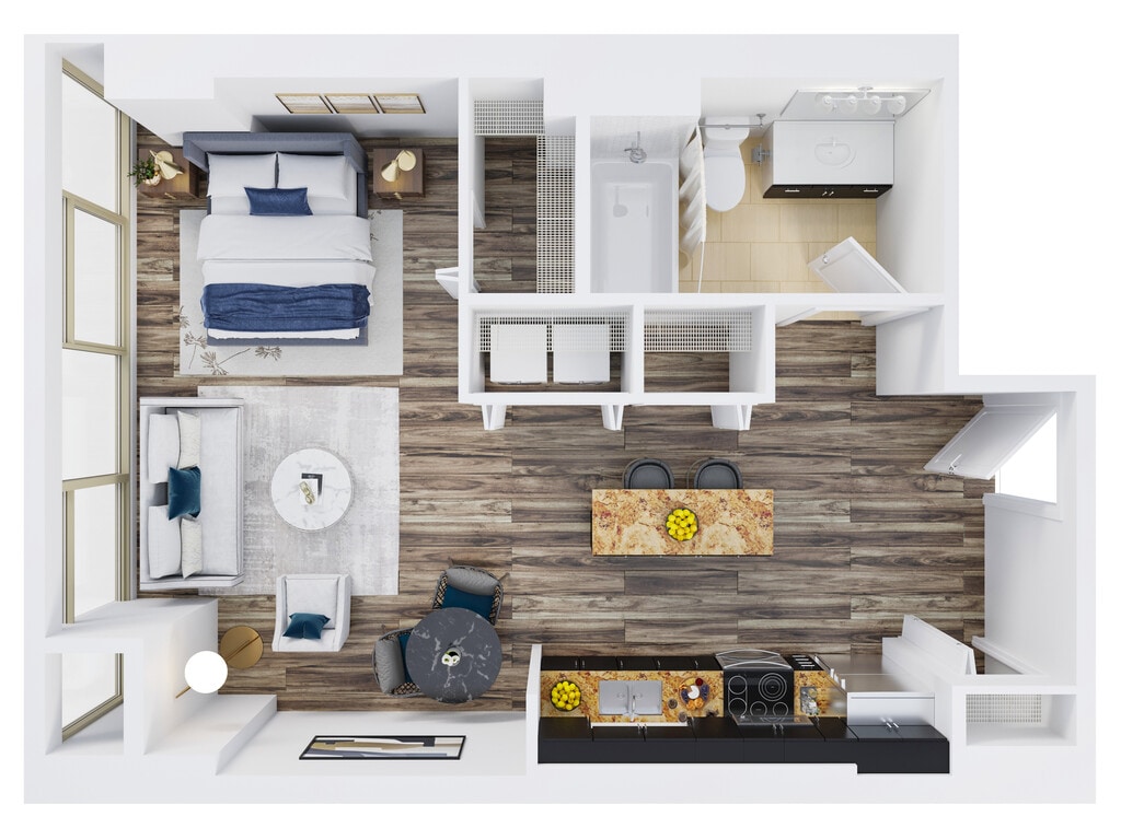 Studio, 1 Bath, 610 sq ftAvailable NowModel Gallery
