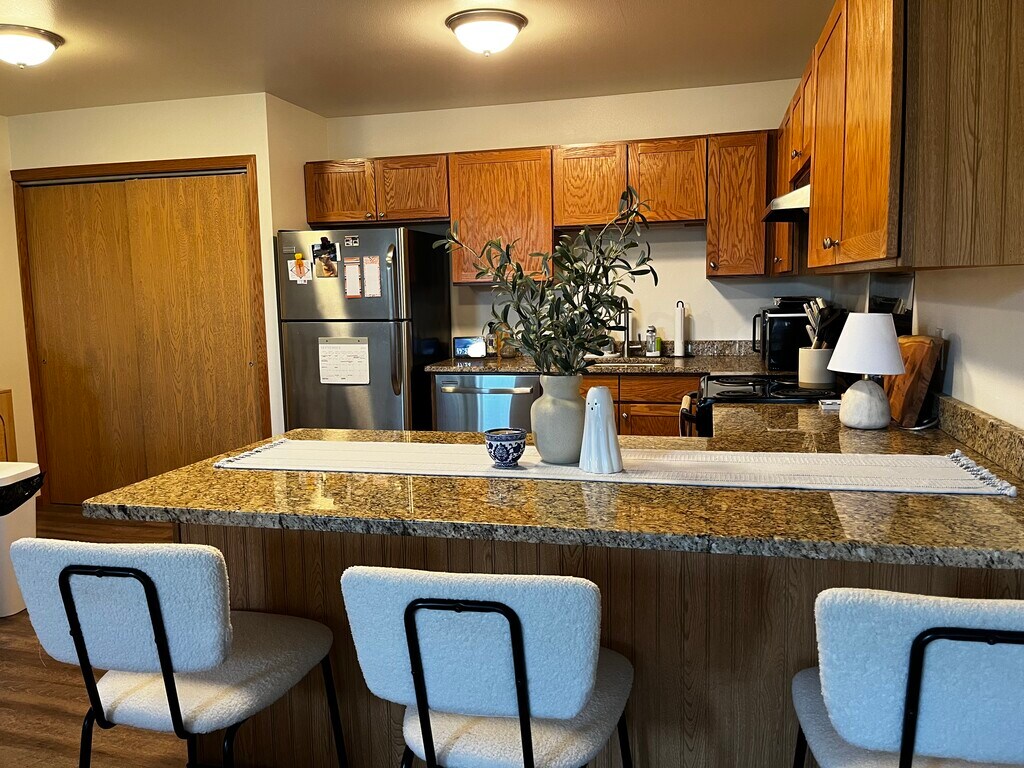 Welcome to your new home! This stunning 2-bed, 1-bath townhouse has it all. Enjoy a bright, open layout with abundant natural light and stylish design. The spacious kitchen boasts elegant granite countertops, stainless steel appliances, and plenty of cabinet space—perfect for any chef. The modern floor plan features a large living room with luxury plank flooring, plus two roomy bedrooms with ample closets and plush carpeting. Plus, you'll love the in-home washer/dryer, one-car garage, and your very own patio! With lawn and snow removal included, you can enjoy the comforts of home without the hassle. Plus, you have all the amenities you need in walking distance while being tucked away in a quiet neighborhood setting. Details: Bedrooms: 2 Bathrooms: 1 Parking: Paved Parking Lot and Detached 1 Car Garage Laundry: Stacked Full Size Washer and Dryer in Unit Utilities: Water, Sewer, and Trash included in the rent. Tenant Pays Electric Pet Policy: 2 Cats Allowed if Neutered/Spayed. 1 Dog Allowed if Under 30 Pounds, Spayed and Neutered (additional rent and security deposit will apply) Call today to schedule a tour of this amazing apartment!
