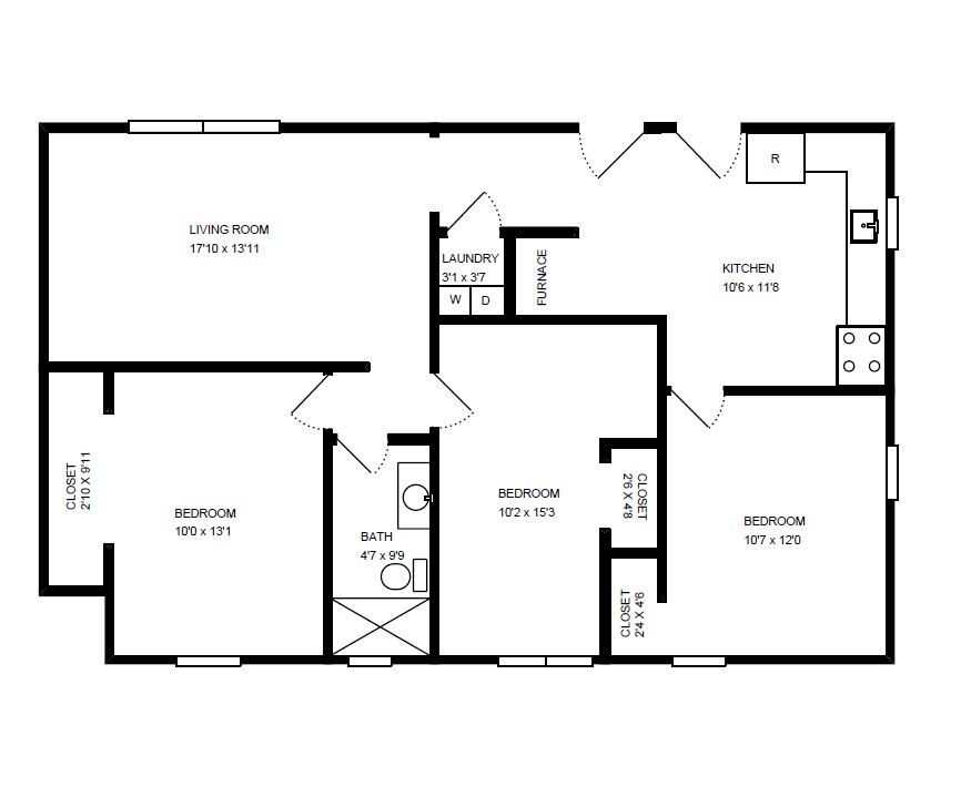 Availability Date Unit Sq Ft Unavailable Three Bedroom 890 sq ft Apartment Model: Three Bedroom3 Bedroom, 1 Bath, 890 sq ftUnavailable![]()