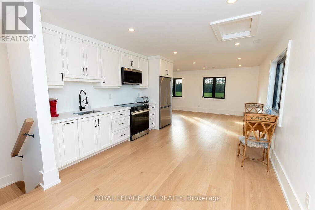 Enjoy all inclusive country living in this brand new large second floor apartment unit,20 mins from Orangeville,just outside the town of Waldemar. This newly created carpet free,2 bedroom apartment with large windows providing endless views and natural light. The eat in kitchen offers,pot lights,stone counter and stainless steel appliances. The living room features pot lights,ample space for furniture and modern features. There is also 3 piece bathroom with glass walk in shower and private laundry. Parking for 2 vehicles. This unit is located above 2 garages of a country estate. (id:52069) ID#: 1585071