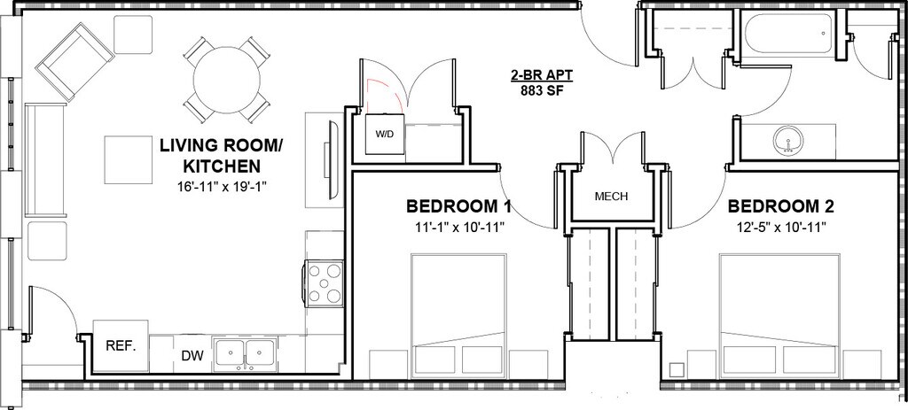 Apartment Unit: UnitGApartment Model: 2nd Floor 2 bedroom$2,1002 Bedroom, 1 Bath, 883 sq ftAvailable November 15, 20251st Floor 2 bedroom