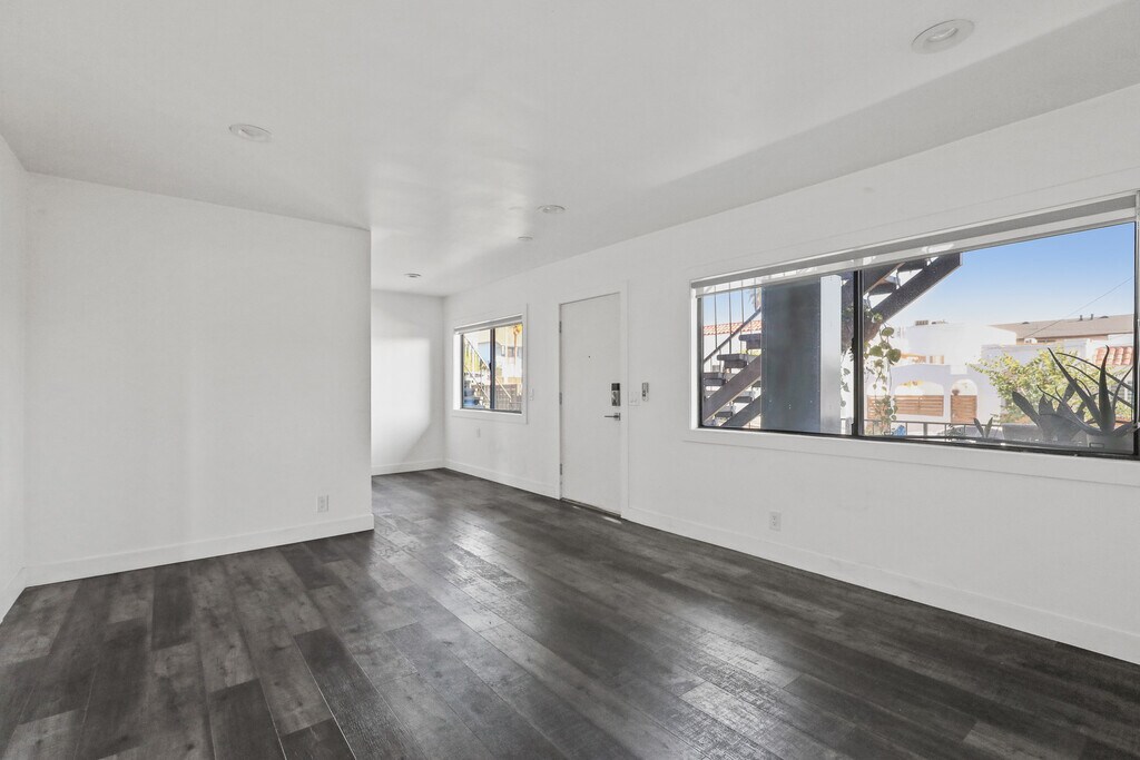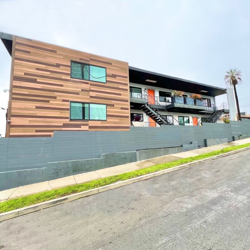 Inspired by midcentury Modernism architecture, these newly renovated rental homes are just minutes to the thriving Arts District and Downtown Los Angeles. 215 North Fickett Street, located in the heart of Boyle Heights, features a five-unit, two-story low-rise building with enhanced modern architecture with a gray cement shade base and accents of orange. Carefully restored and designed by a renowned LA designer, these 1960s modern luxury rental homes feature keyless entry door locks to spacious two-bedroom floor plans with newly renovated kitchen and bathrooms. The kitchen boasts sparkling white stone quartz countertops with brand new self closing cabinetry and high-end stainless-steel refrigerators with matching gas cooktop with oven and microwave. iRing doorbells with a smart home video security camera are also included. Bathrooms feature porcelain tiled bath tubs and glass shower doors. Each rental home also includes central A/C cooling and heating with recessed lights with luxury style cellular shade window blinds and distressed wood plank floors. Located east of Downtown LA, Boyle Heights is one of LA's most historic and vibrant neighborhoods and minutes off the 5, 10, and 710. Boyle Heights, historically known as Paredón Blanco, is a neighborhood in Los Angeles, California, located east of the Los Angeles River. It is one of the city's most notable and historic communities and is known as a bastion of culture, hosting cultural landmarks like Mariachi Plaza and events like the annual Día de los Muertos celebrations. 215 North Fickett Street has a Walk Score of 92 out of 100. This location is a Walker’s Paradise so daily errands do not require a car. 215 North Fickett Street is a six-minute walk from the Metro L Line (Gold) at the Soto Station stop. This location is in the Boyle Heights neighborhood in Los Angeles. Nearby parks include Evergreen Recreation Center, Evergreen Playground and Hollenbeck Park. Drake Real Estate Group | Welcome home | Schedule your private viewing | | EXTERIOR | - Newly Modernized Façade - City Approved & Completed Earthquake Seismic Retrofit - Keyless Electronic Entry | INTERIOR | - Cellular Shade Window Blinds - Spacious Designer Floor Plan - Vinyl Plank Flooring | KITCHEN | - Modern Designer Cabinetry - Quartz Countertops - Stainless-Steel Appliances - Refrigerator - Range w/ Oven - Microwave - Open Kitchen Space Layout | BATH | - Tiled Shower and Bath - Glass Shower Doors - Oversized Vanity Mirror | AMENITIES | - Washer & Dryer (community) - Assigned Parking - A/C Units