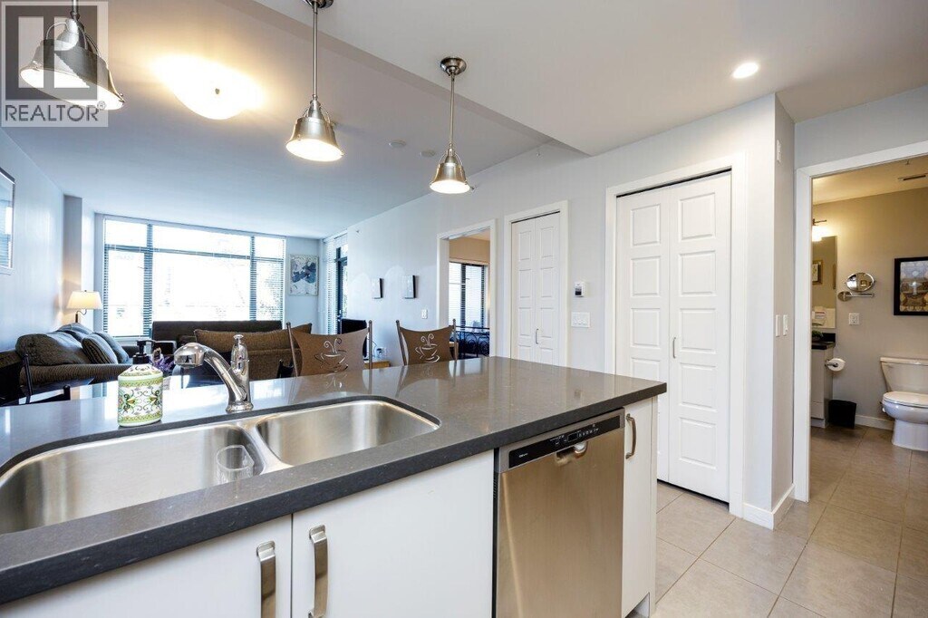 Discover contemporary living in this beautifully furnished 650-square-foot condo,ideally situated in North Vancouver. This one-bedroom,one-bathroom residence is perfect for individuals or couples seeking a stylish and comfortable home. As you step inside,you are welcomed into a bright and open living area,thoughtfully furnished to create a warm and inviting atmosphere. Large windows frame breathtaking mountain views and allow natural light to flood the space,enhancing the airy and spacious feel. For your entertainment needs,a flat-screen TV is included,providing a perfect spot for relaxation and enjoyment. The kitchen is a culinary enthusiast's dream,featuring sleek stainless steel appliances and elegant granite,stone,or quartz countertops. (id:52069) ID#: 1869282