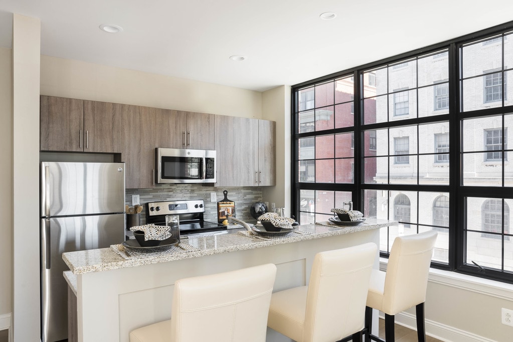 218 Arch Street Situated in lively historic Old City Philadelphia with immediate access to city’s top attractions and amenities, 218 Arch is an excellent choice for people of all ages looking to enjoy the best in urban living. FEATURES: Modern kitchens with granite countertops, stainless steel appliances, under-mounted sinks, and breakfast bar In-unit washer and dryer Hardwood flooring Floor-to-ceiling convector-free glass windows Abundant natural light Astonishing city views Private balconies available AMENITIES: State-of-the-art fitness center with Peloton Cycle® Studio Resident lounge featuring table games, big screen TVs, and WiFi Fully-furnished roof deck Fully-furnished resident courtyard Business center with free WiFi Resident bicycle storage with tools and pump and bike-share program On-site underground parking available Pet-friendly
