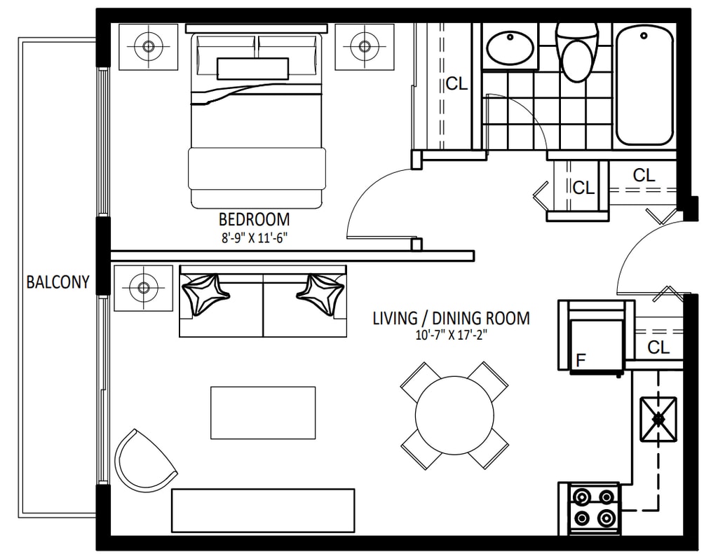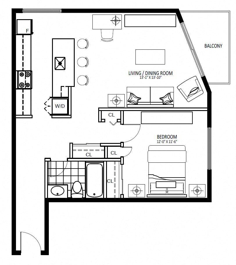 2183 W 44th Avenue - Plan E - Floorplan Apartment Unit: 210Apartment Model: 2183 W 44th Avenue - Plan E$2,7291 Bedroom, 1 Bath, 723 sq ftAvailable Now
