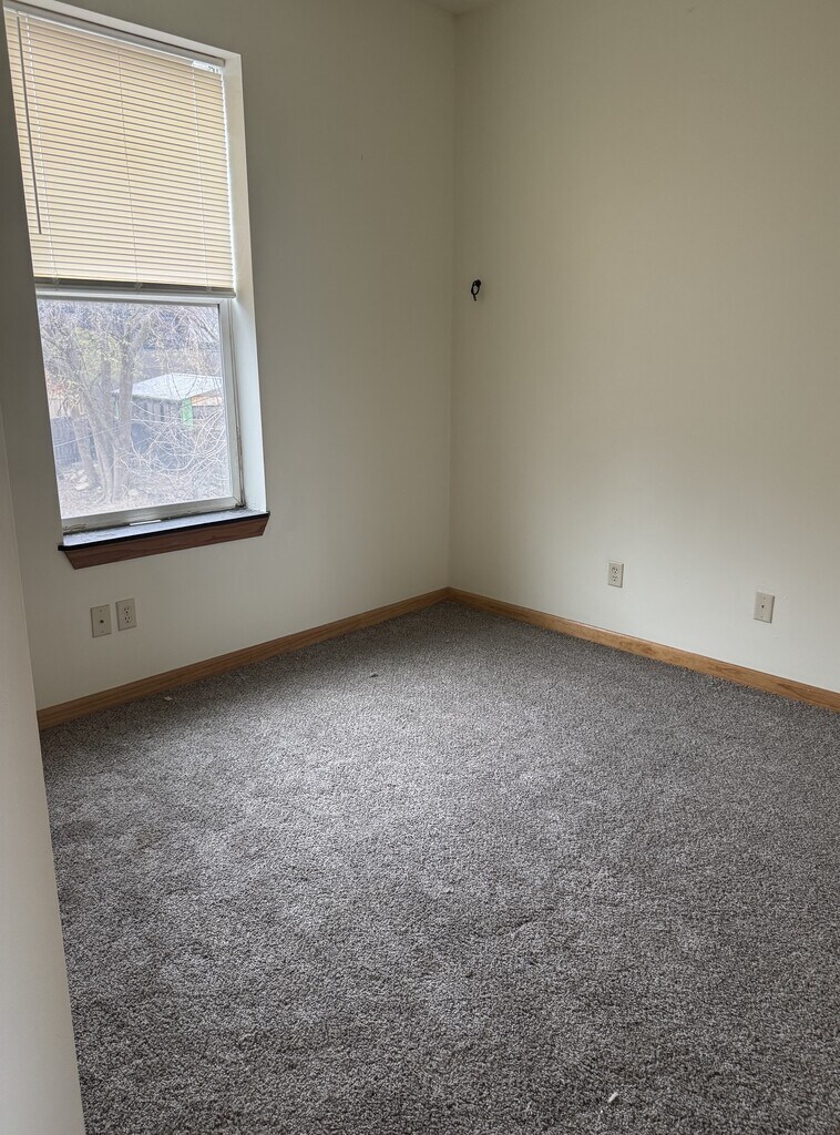 Updated upper rear unit of a four unit house. New carpet, new bathroom floors, refinished hardwood floors, fresh paint and new appliances. 2 floors of living space. Open concept, 13' ceilings, maple hardwood floors, maple kitchen cabinets, microwave, stove, fridge, garbage disposal, 2 full bathrooms & coin laundry. The first floor has the living room, kitchen, 1 bedroom and full bathroom with stand up shower. The upstairs has two more bedrooms and a full bathroom with a tub/shower. The owner takes care of the lawn and snow removal. No off street parking available. No pets; no smoking. Walking distance to several local businesses.