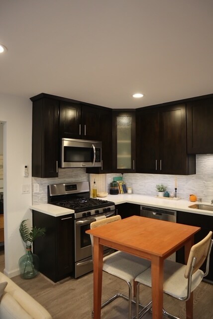 This 1-bedroom, 1-bathroom apartment located at 219 42nd St offers 450 square feet of living space. The living room features ample natural light and connects directly to a private deck. The kitchen is equipped with stainless steel appliances, including a dishwasher, oven, and refrigerator, providing modern conveniences for daily living. The bathroom includes standard fixtures and is designed for functionality. Additional amenities include in-unit washer and dryer, air conditioning, and a smoke-free environment. The exterior features a deck, perfect for outdoor relaxation. This property is ideal for individuals seeking a compact and efficient living space in close proximity to beach and LAX.